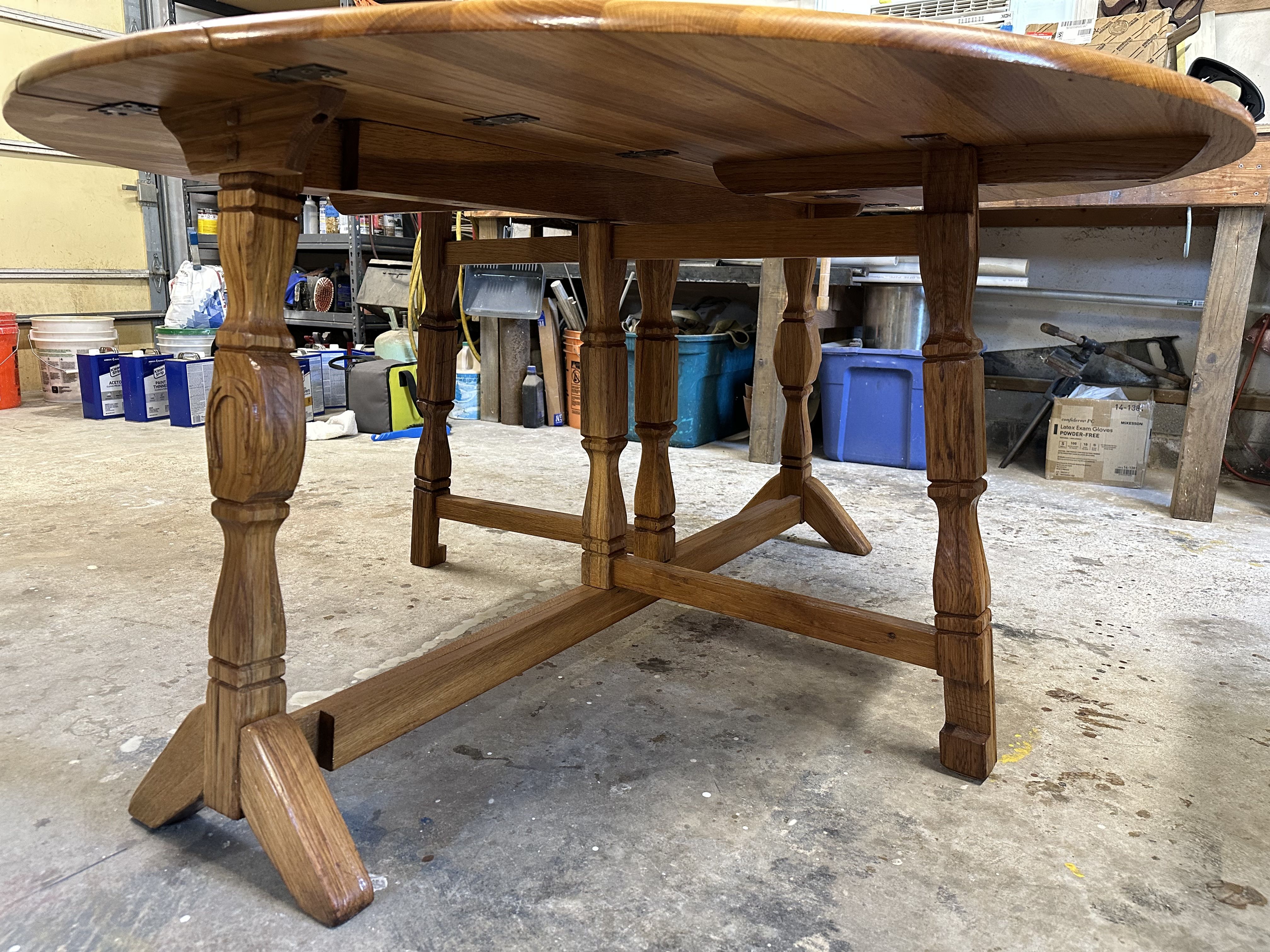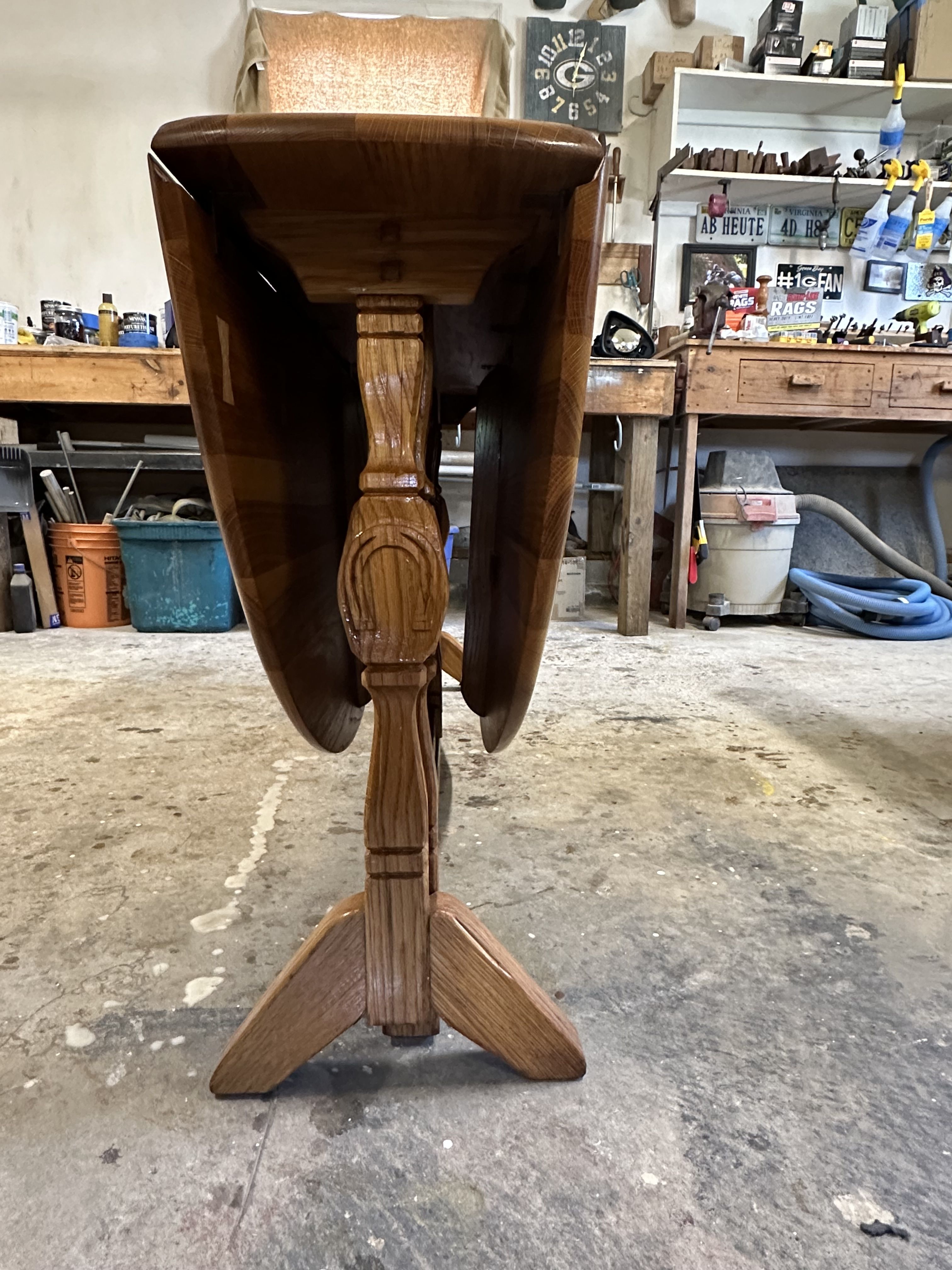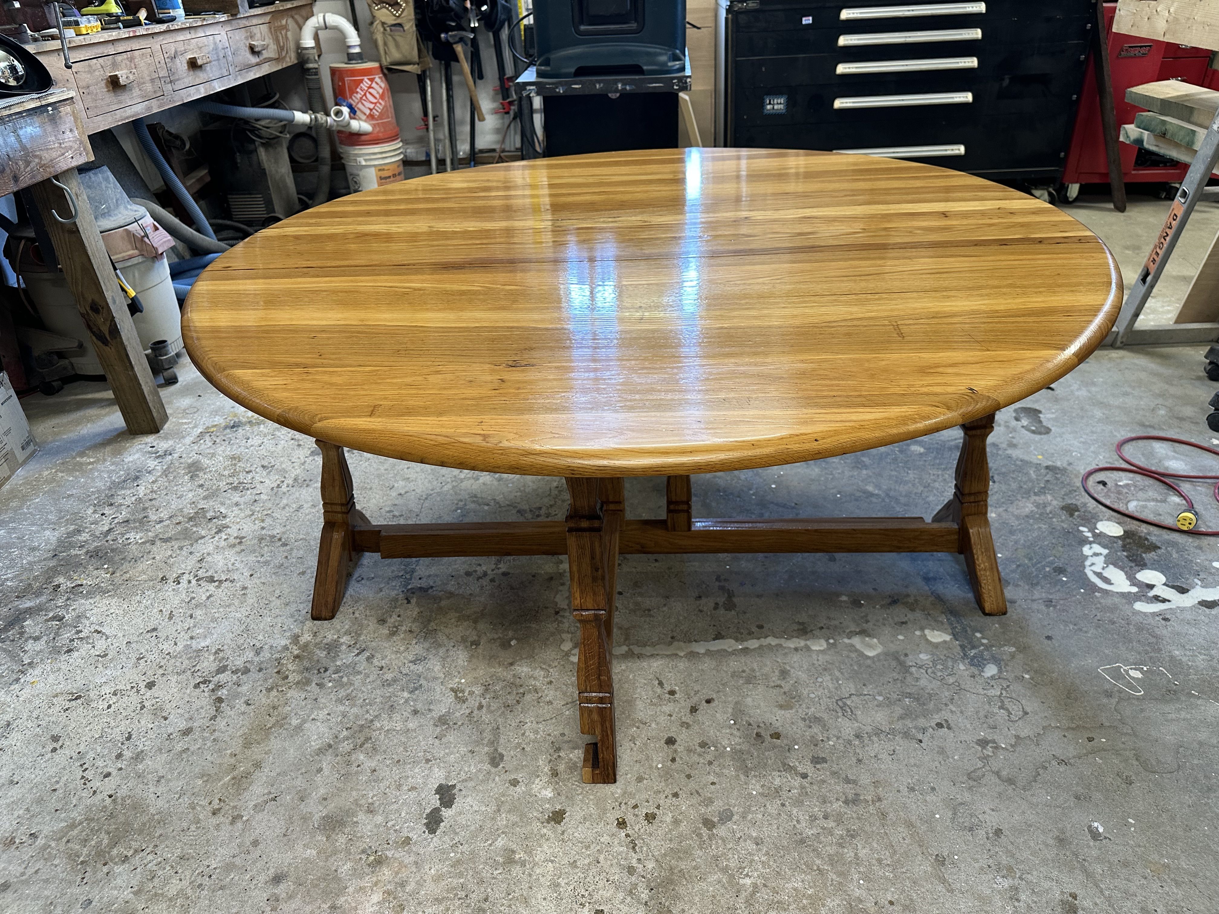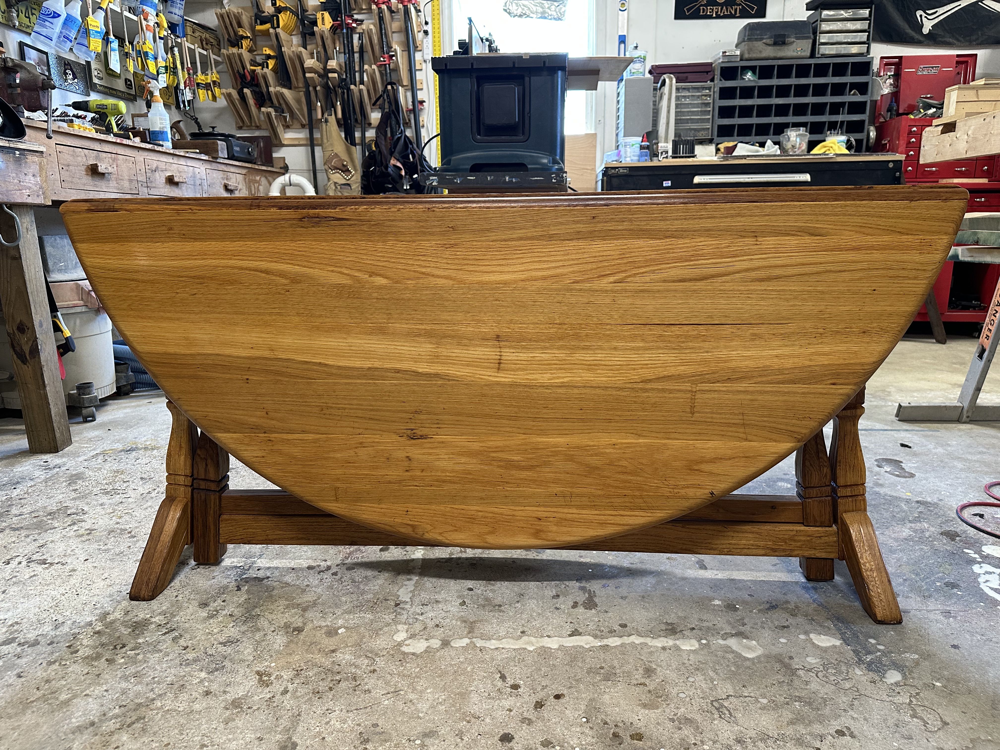 Finished the table. Rubbed the whole thing with 0000 steel wool and waxed it. I’m happy with how it came out, all of the old remembered character marks are still in it.