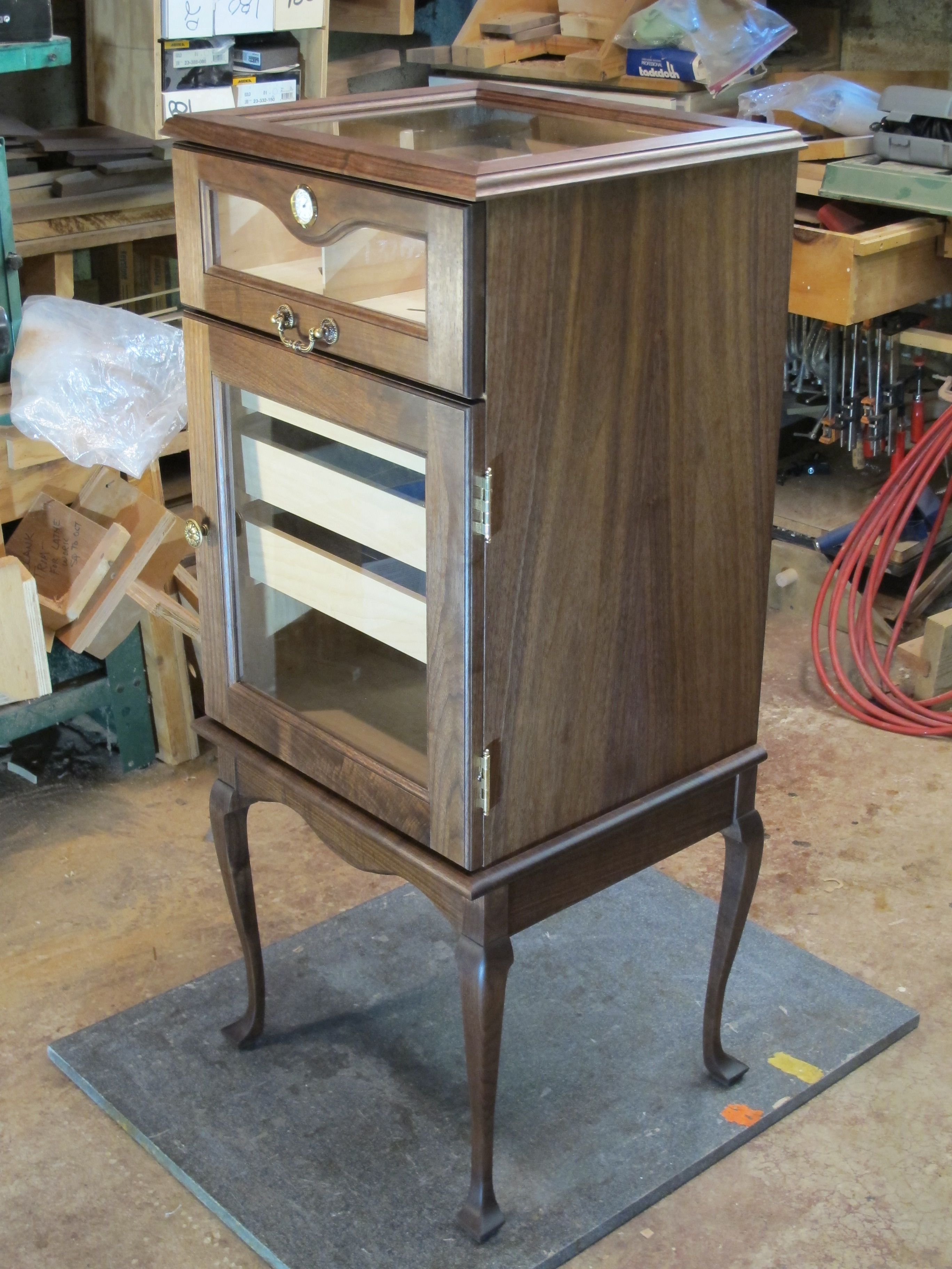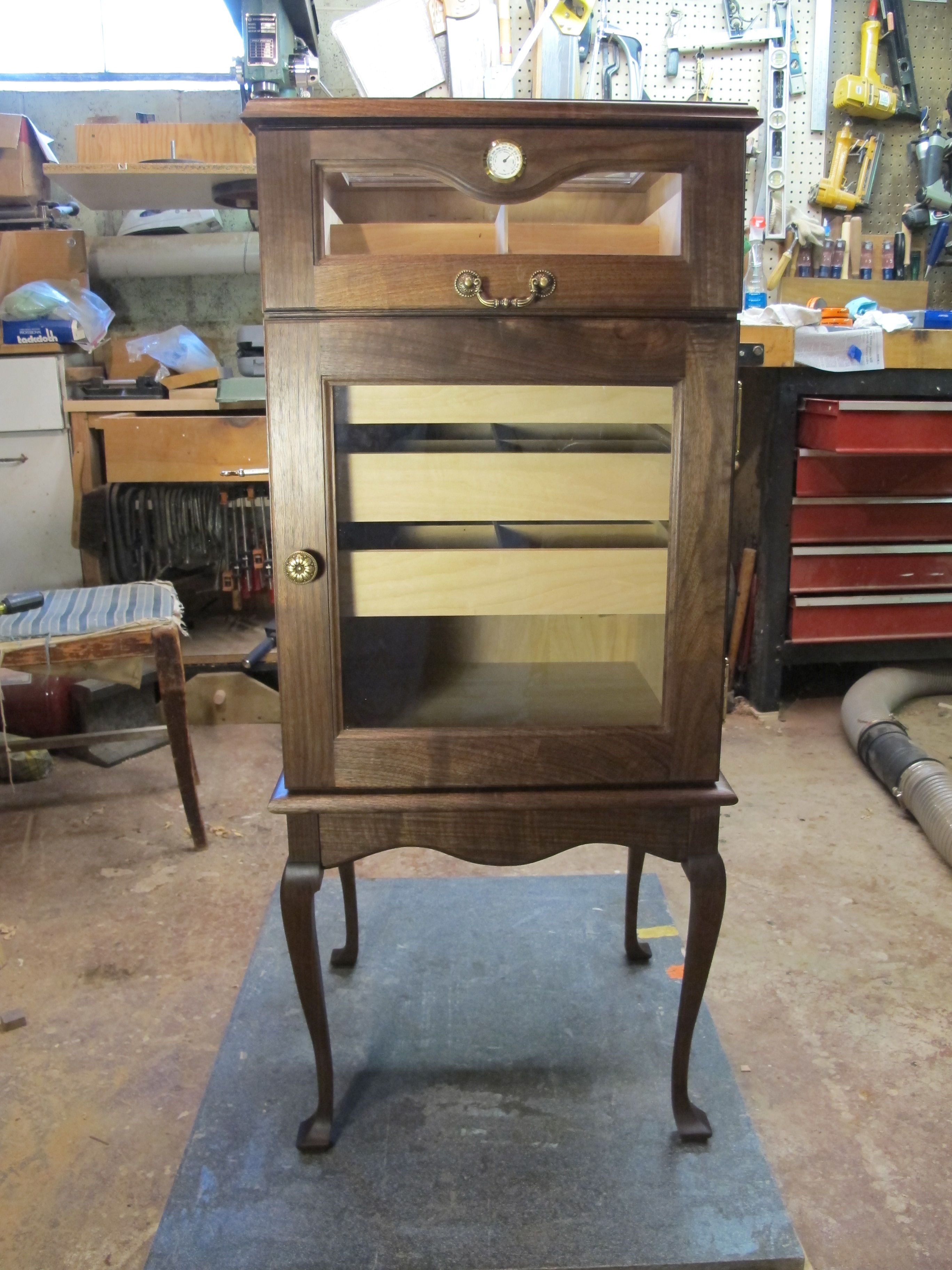 A while back, I got "conned" into making a cigar humidor. It started as a desk top designed but each design was rejected until it became a full fledged, upright, free stand cabinet. I had agreed to a trade of a pickup load of air dried walnut 4" x 16" x 10'. Still came out slightly ahead when finished.
