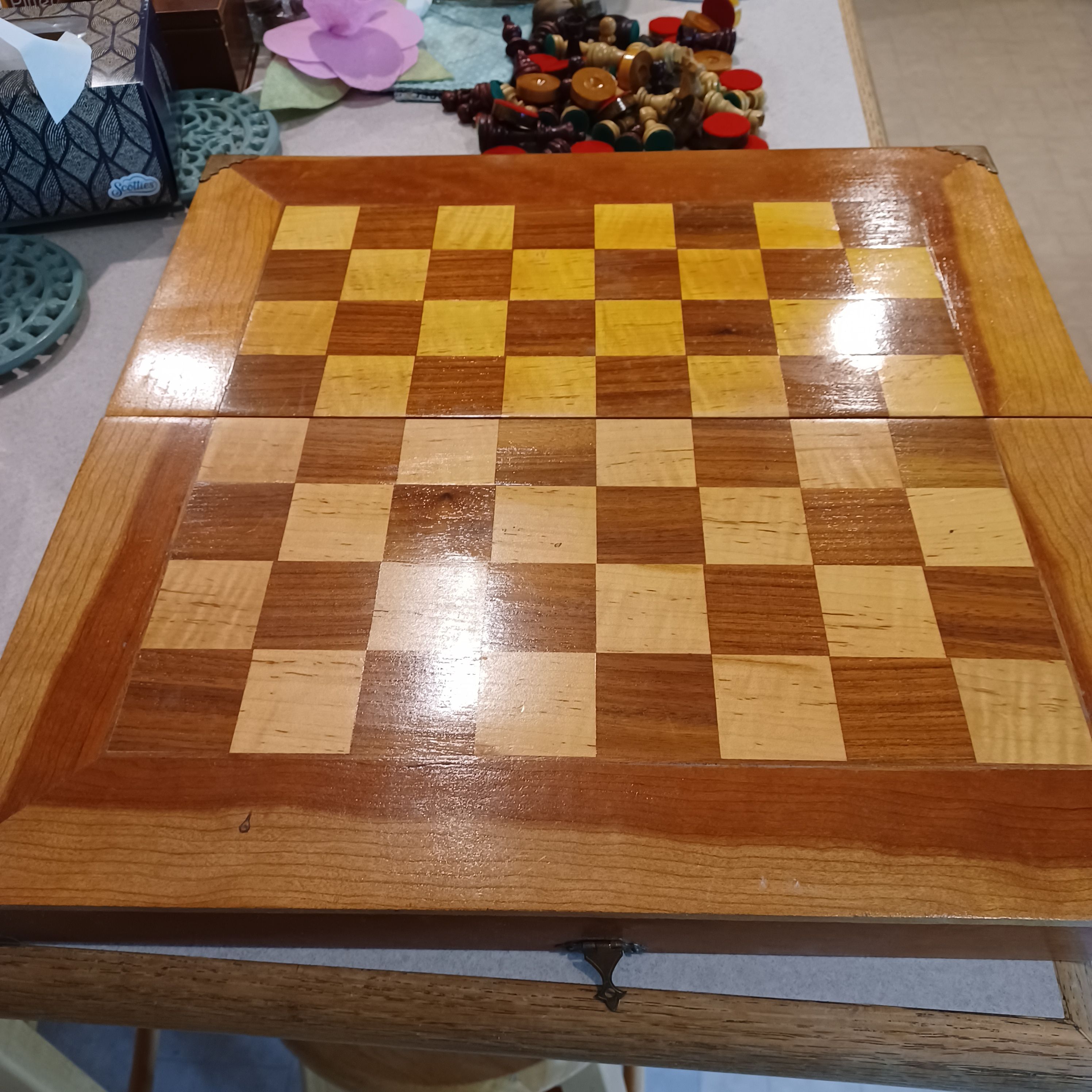 Smallpatch Posted May 6 Report Posted May 6 If those blocks are solid wood and can take the whole board out of the frame then you could sand it all with a power sander until you get past all the discoloration. There is no way to remove that much stains without causing more problems. Wouldn't it be nice if paint remover would make it all back to original but thats only wishful thinking. We bought a chess set almost the same as what you have years ago. Those guys down there only have solid wood to work with so maybe that is what you have... Grandpadave52, JimM and Headhunter 3 Quote