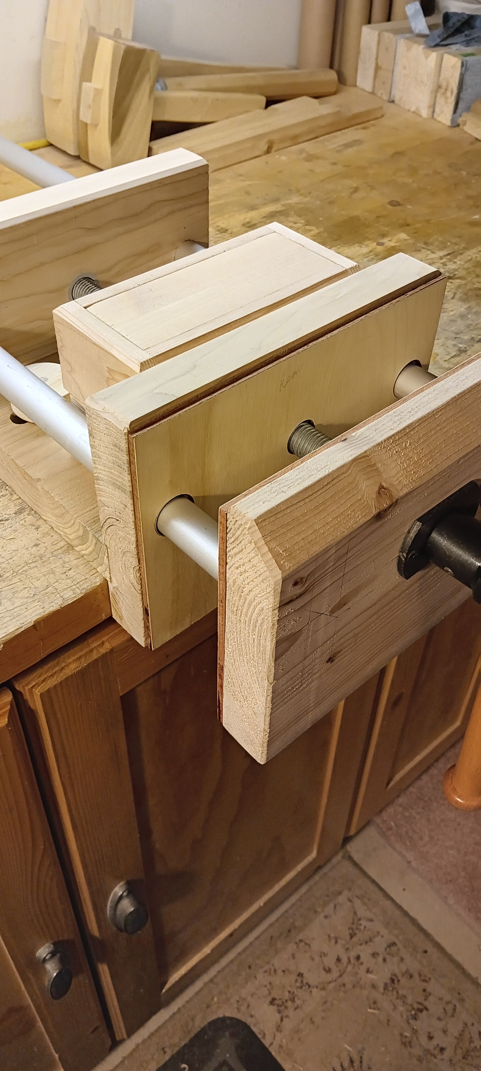 MrRick Posted October 21 Report Posted October 21 All, Just after making the vise and posting these photos above, I decided to add some details. I chamfered body and jaw edges, sloped the front jaw for ease of chisel work, added some replaceable jaw liners, and some end caps to the aluminum stabilizer rod ends. Here's what it now looks like now. See first post here. lew, Grandpadave52 and Gunny 3 Quote