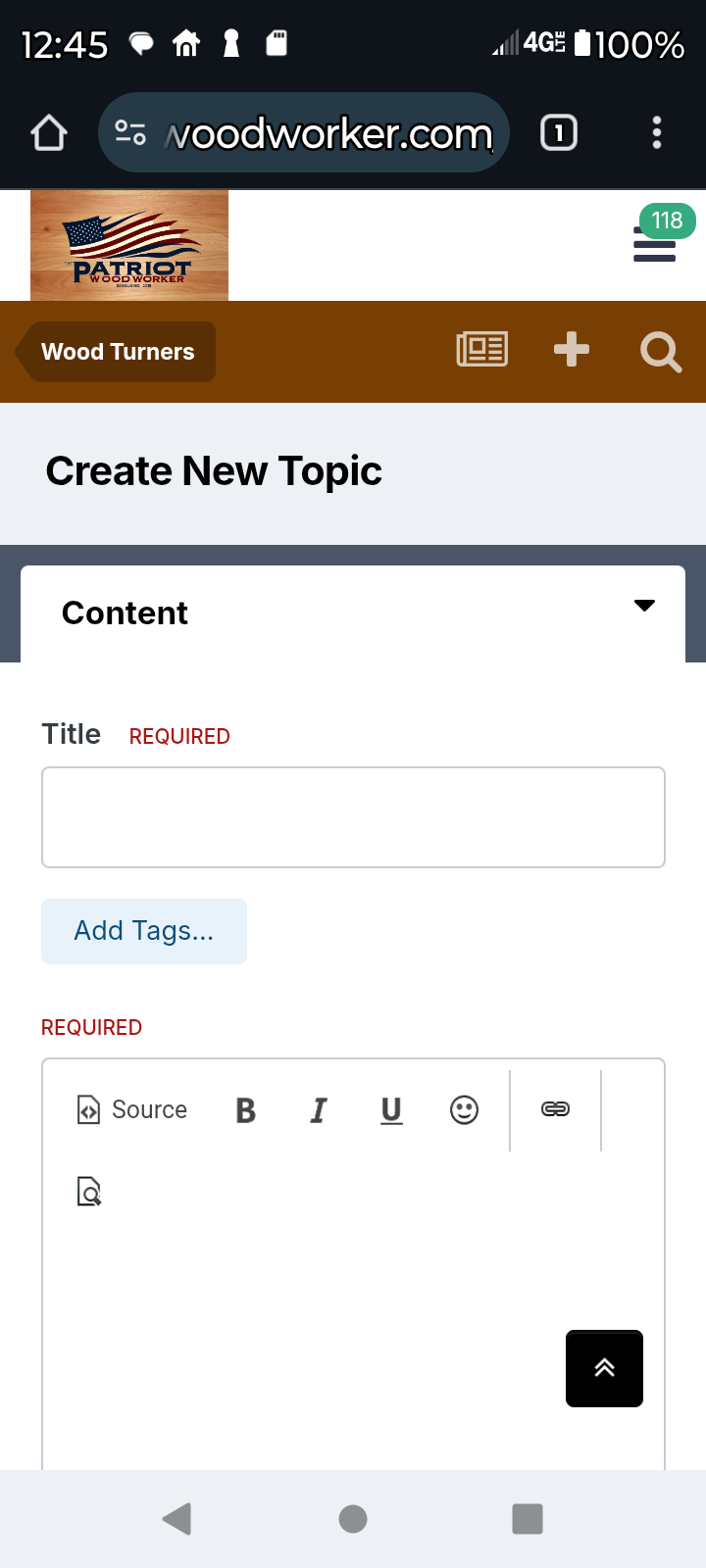 For this example I will use the Woodturning Forum. Scroll down to the Sub-Forum where you want to post and select it
