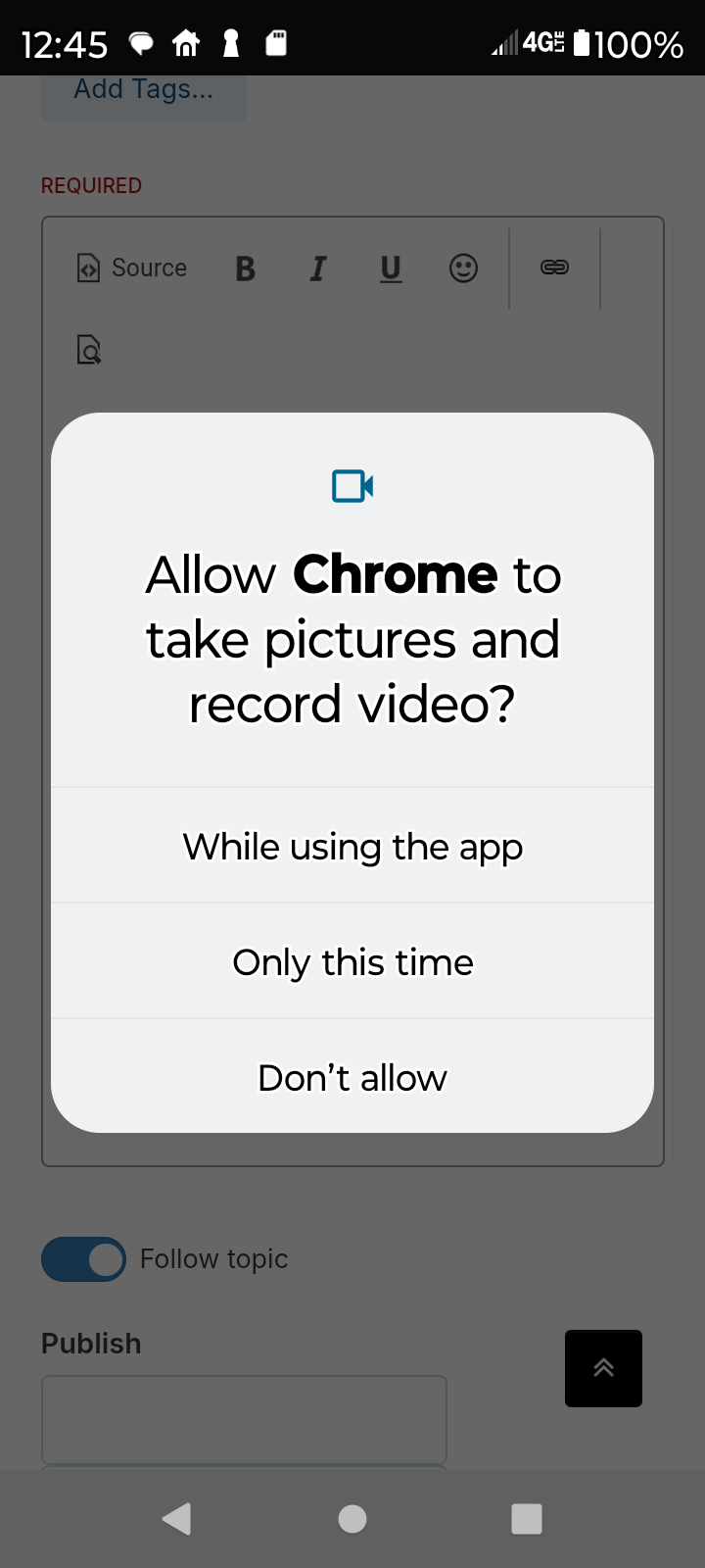 When selected look for the Blue Button for "Start New Topic" and touch it