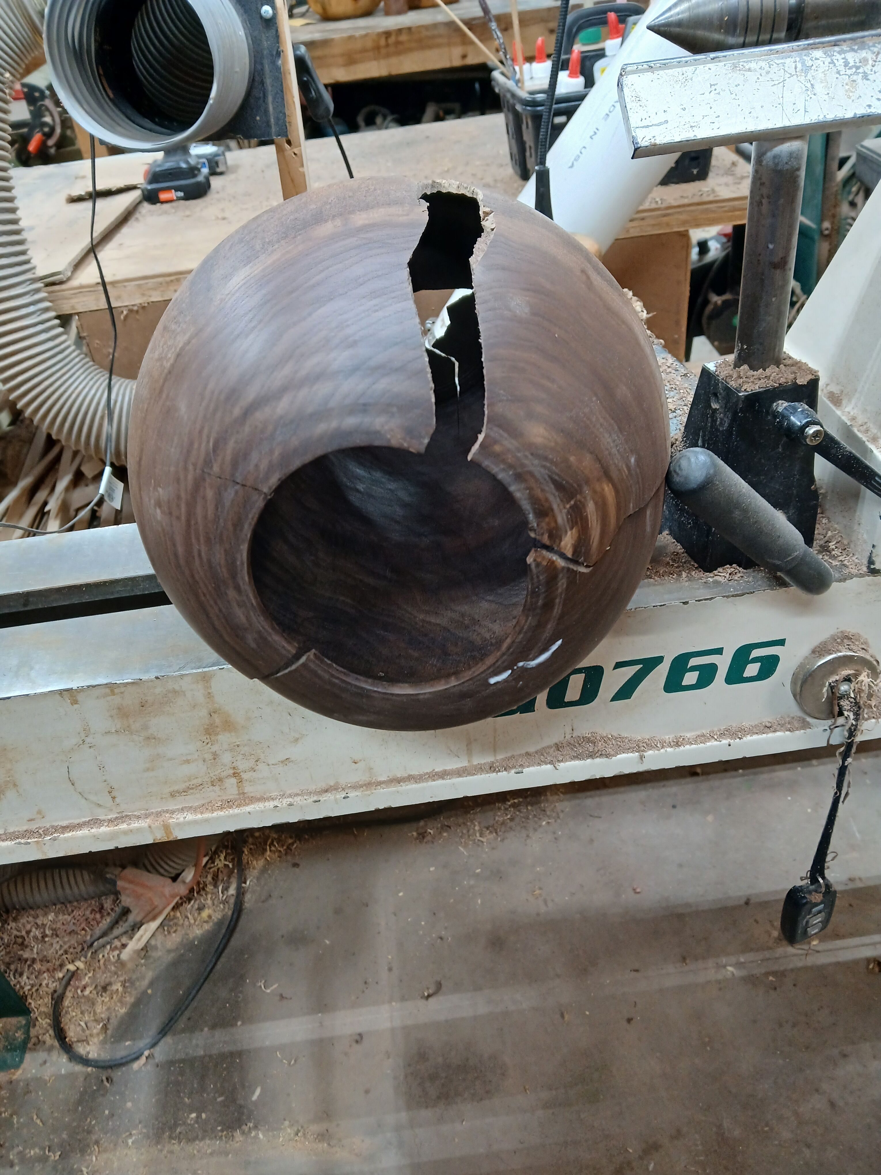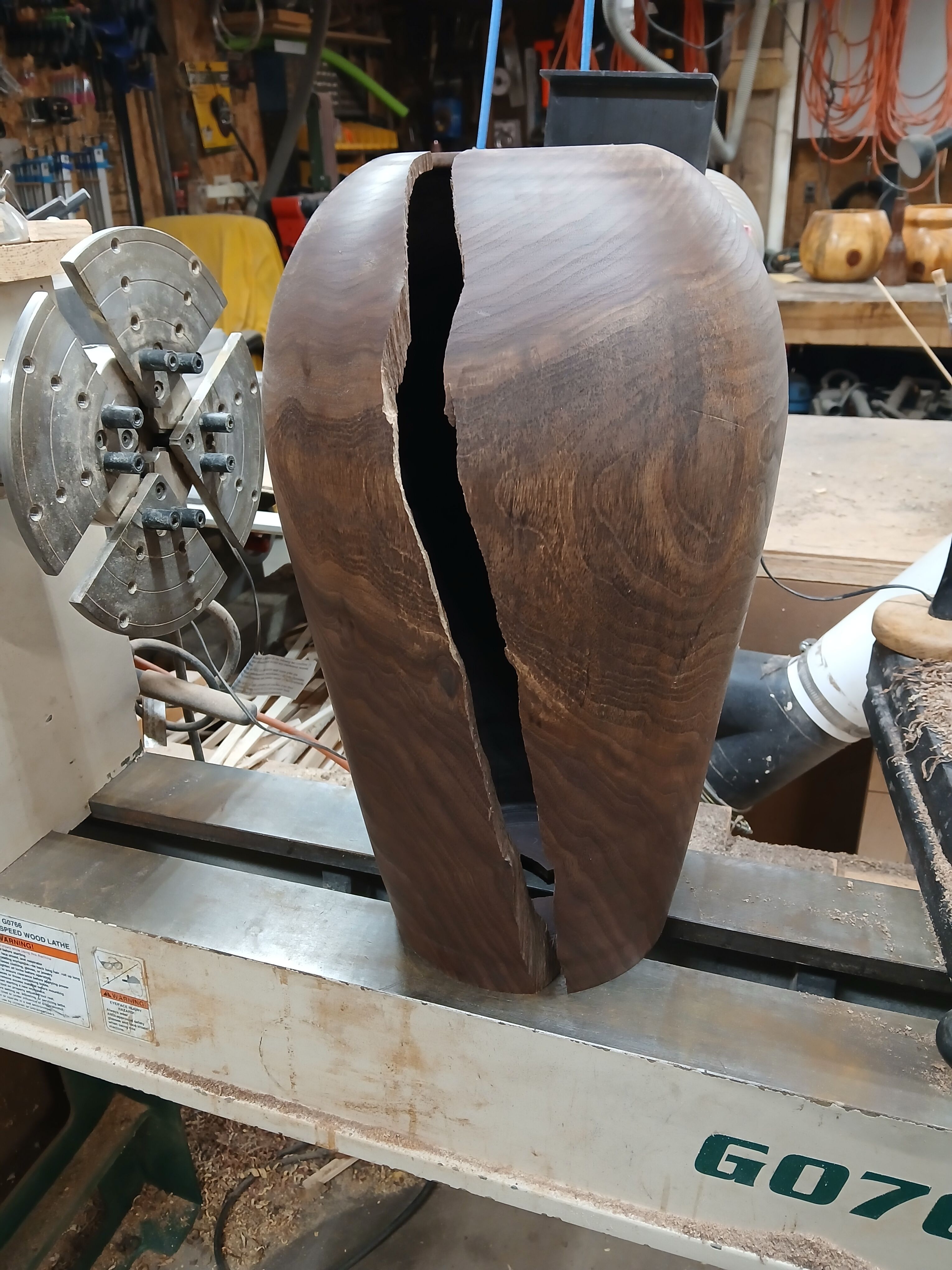 Thanks guys I knew you would understand what happened but I only showed the bottom, the top broke in 4 more places. One of these days I'll master the art of posting pictures and show the rest of the damage. That thing came loose and banged on the bed of the lathe before it went air borne hit a bench then bounced on the concrete floor. One more reason to stay out of the line of fire:) since then I finished another vase same size and shape with no damage.  Pictures coming tomorrow