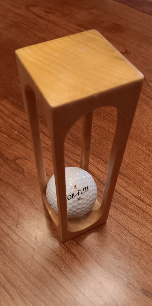 MrRick Posted Saturday at 01:00 AM Report Posted Saturday at 01:00 AM Here's another idea for those who are thinking of making unique Christmas gifts. I made this golf ball in a cage. So what !! .... you might say! Well... ....the cage is one piece of solid maple. The ball is bigger than the openings and it's trapped. No... there are no glued pieces! It's all one piece!! Yet the ball is inside. How? Watch this YouTube link that I made ( 9 sec long) Have the sound on. It makes for a unique gift!! Think Christmas! Cheers! MrRick Grandpadave52 and lew 1 1 Quote