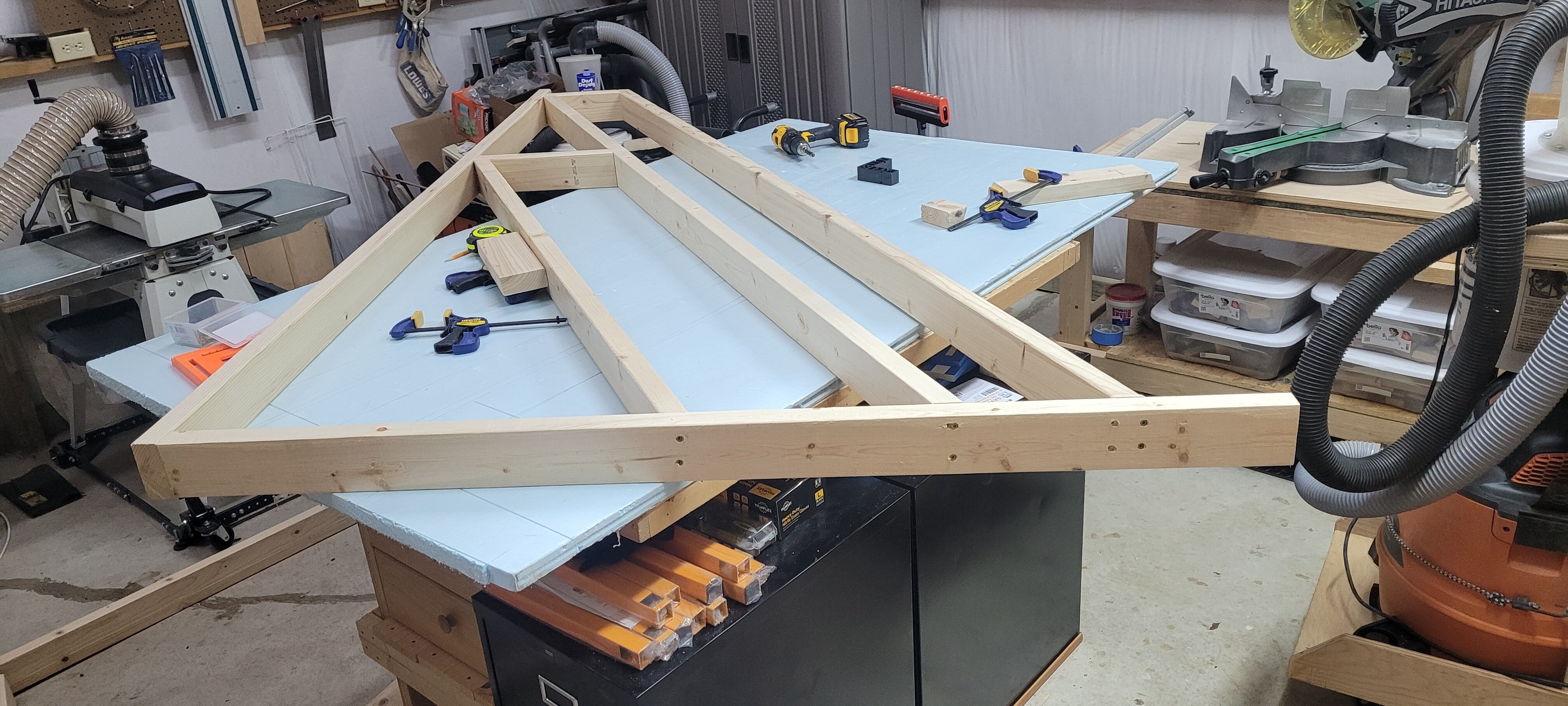 lew Posted December 11 Report Posted December 11 On 12/8/2025 at 8:24 PM, BB1 said: Started on my woodworking storage rack. Ended up making revisions along the way as I laid out the pieces. I built one "side" to figure out lengths, etc that was easier to work through seeing it than on paper. I then just copied that by placing boards on top the first frame and then took my measurements from that as they need to be the same. My helper was pretty bored. I'll link the two with some more 2x4 and then put some OSB to give a solid surface for storing boards. One area I need to fix is the front board - somehow I miscut so put in some temporary "shims." Don't want to have to go buy more 2x4 so I may just build up the bottom (think that should be more secure) and cut those long boards to fit better. Maybe a day late and a dollar short- https://www.woodsmithplans.com/plan/sturdy-lumber-cart/?utm_medium=email&utm_source=WSM+-+NL+-+Woodsmith+Plans&oly_enc_id=7454G3912223B7R Grandpadave52, Larry Buskirk and Fred W. Hargis Jr 3 Quote