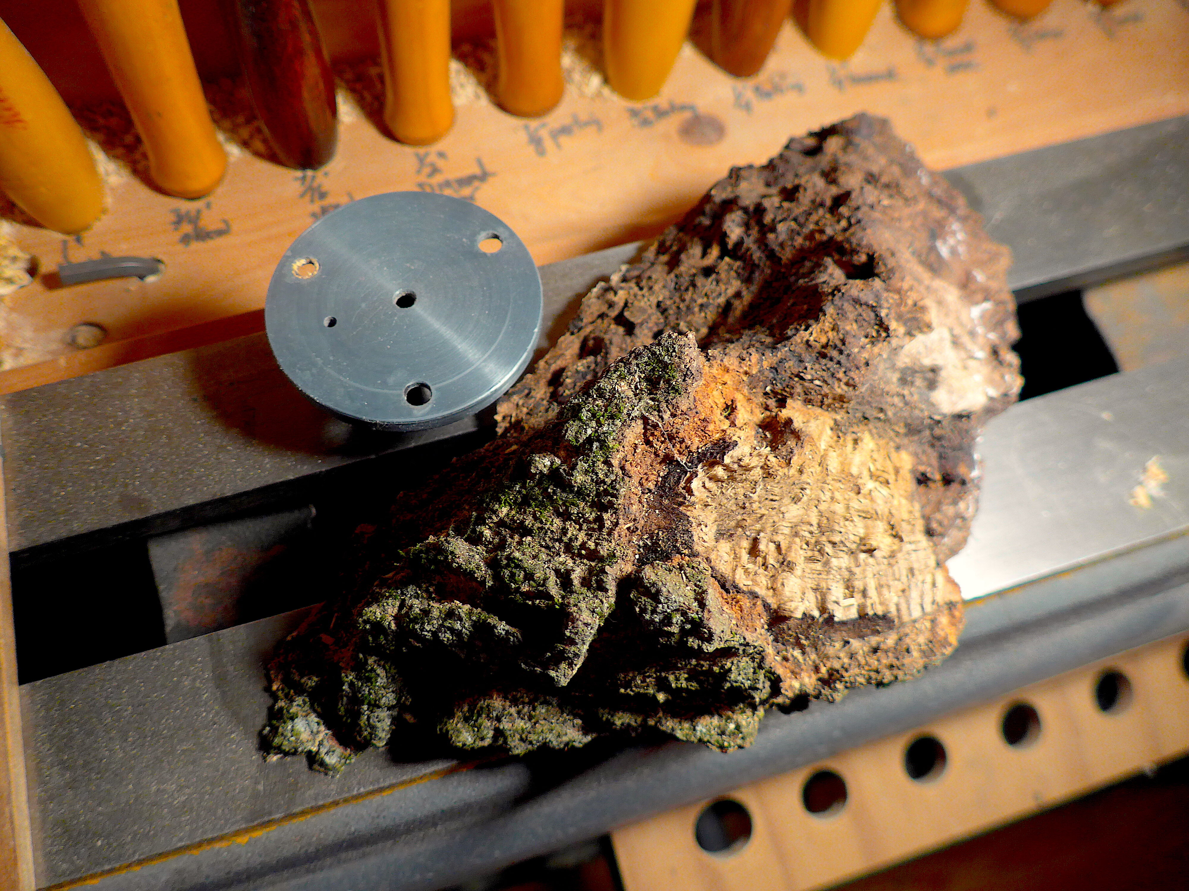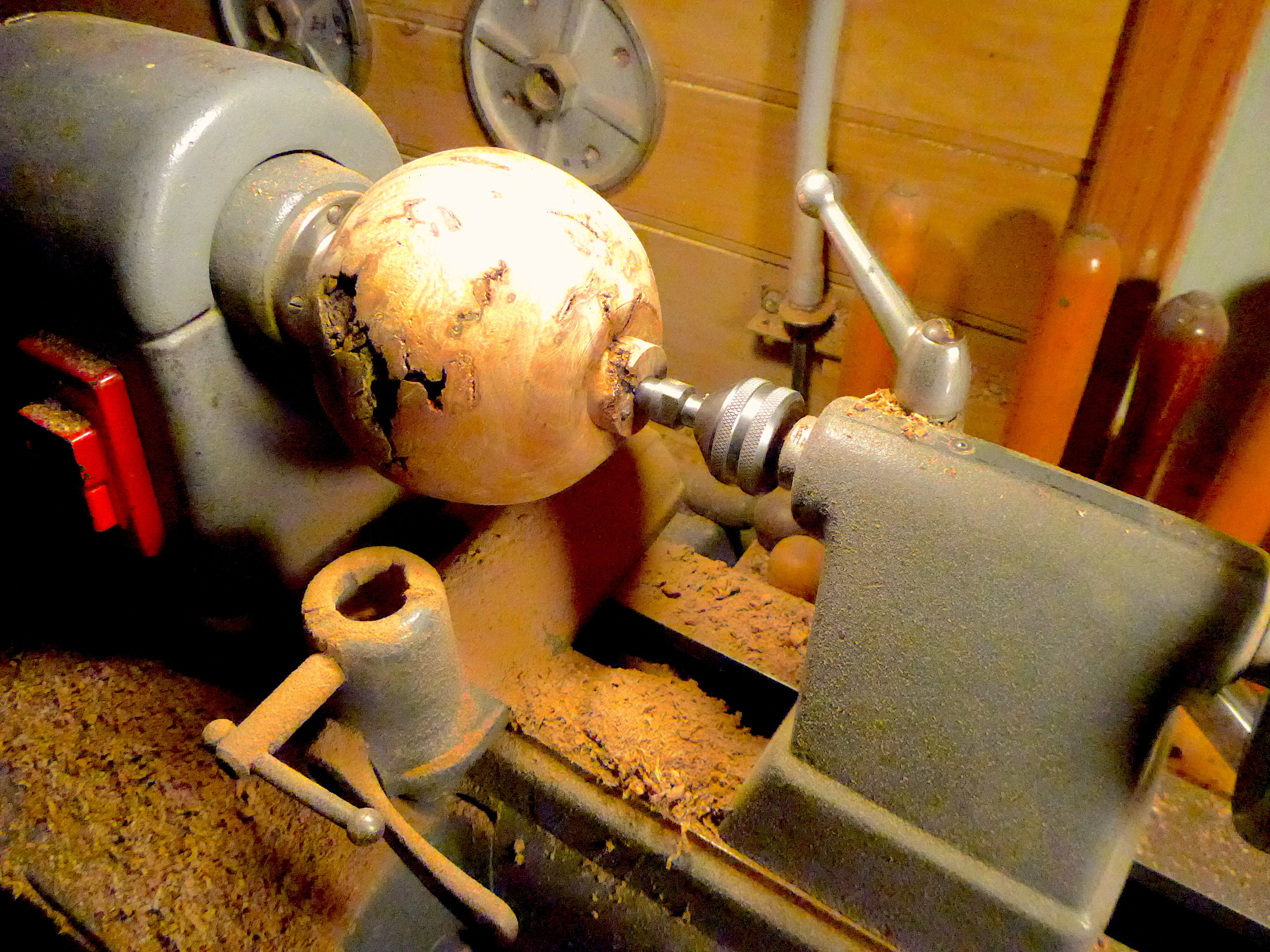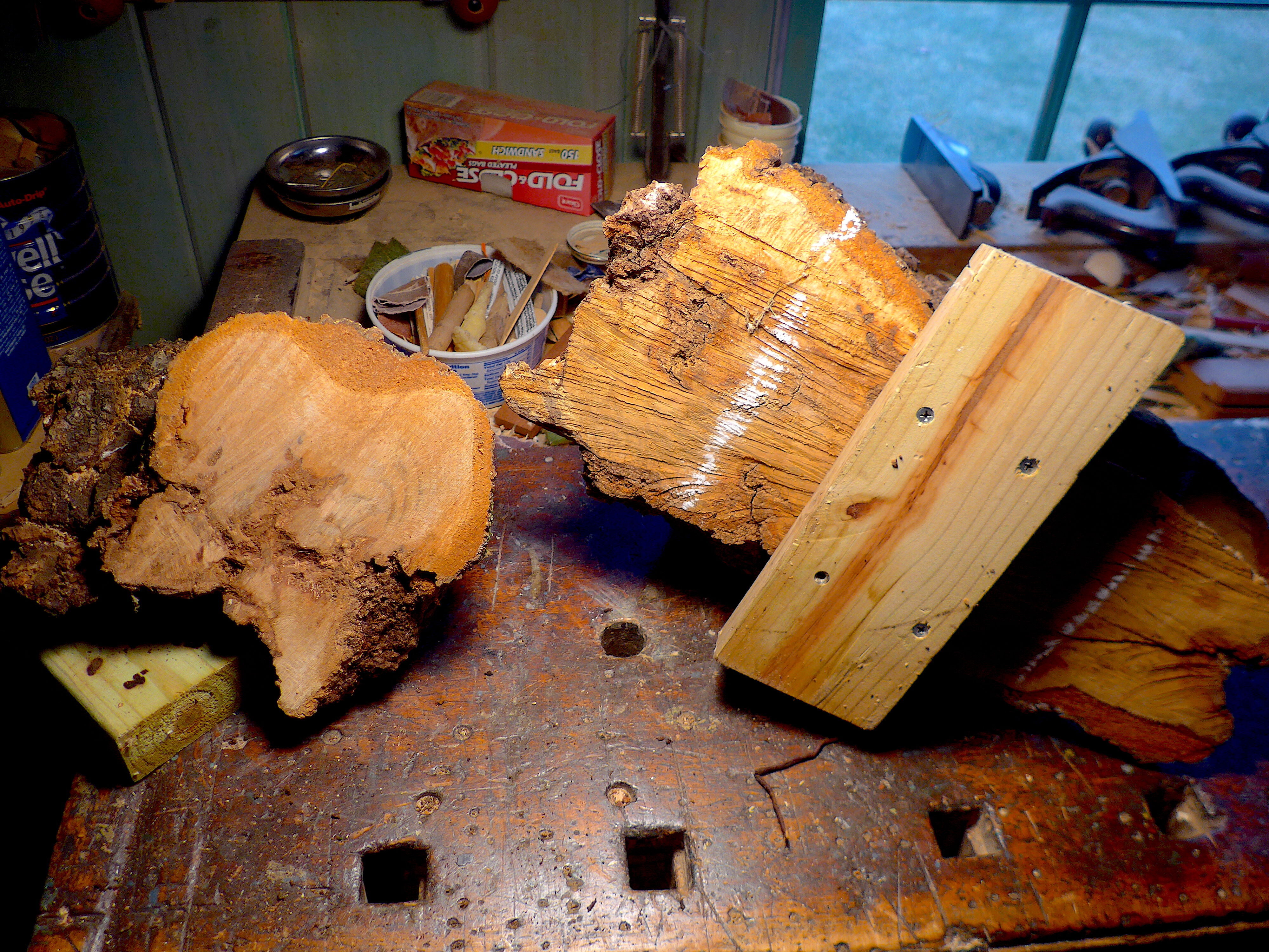 I'm in the process of cutting down my big red oak burl into smaller, turnable, chunks of wood that will fit on my lathe(16"). I've used a screwed-in-place 2X4, to be able to hold things in place while I use a handsaw to take off the extra wood to balance the pieces. We'll see where this goes!L1110691.thumb.JPG.afc08555b321a27e4484438c07ea5952.JPGL1110692.thumb.JPG.d3c66a70e5eaf989209b0b6c4aee1247.JPG