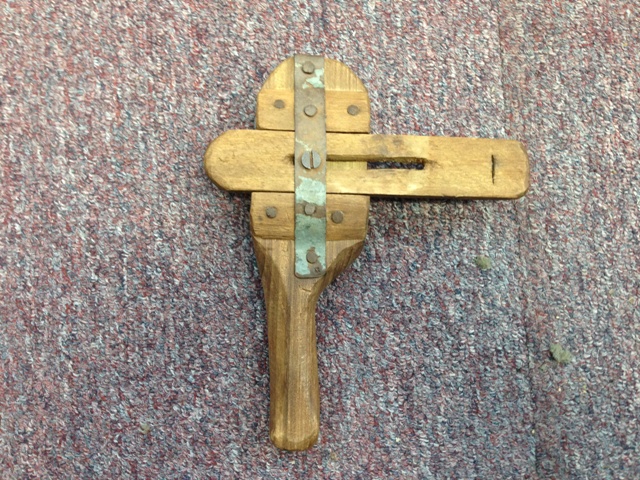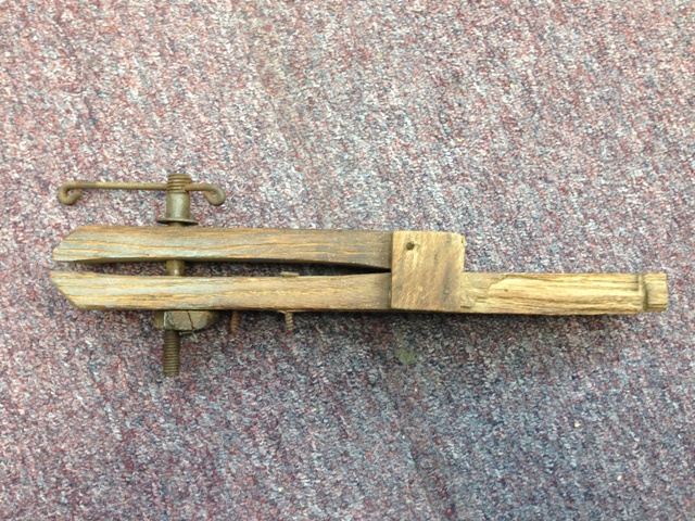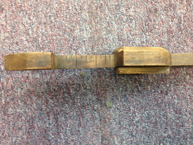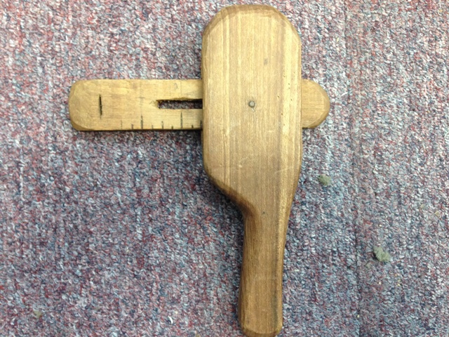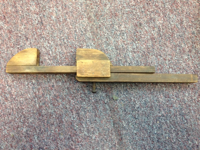 The wooden caliper.