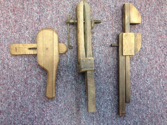 There is a Wooden Scribe, a Wooden vise and A Wooden Caliper.