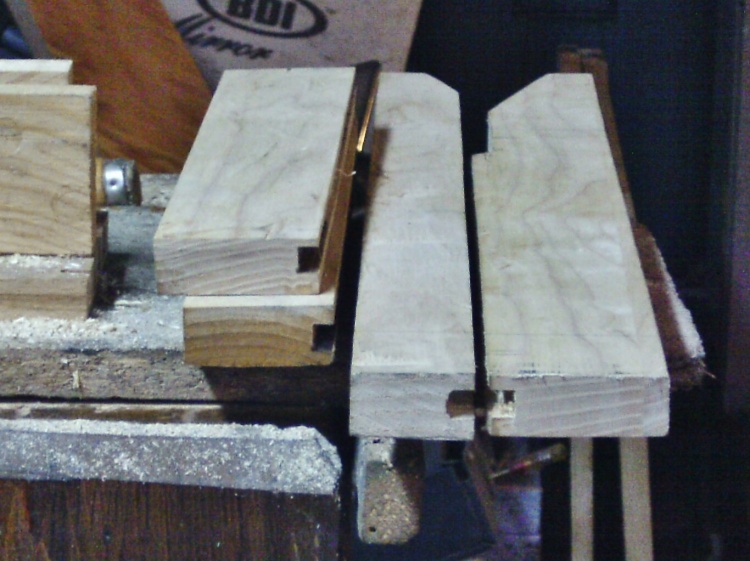 Just imagine two of each of these.  And I got the router fixed up to route some more grooves,  First one was burned.....Hmmmm, checked the speed setting?   Ah, clear down in 3rd gear...moved it up into 6th gear and try again.   Much better.   Ran a few planes around, to get all these parts to match up.   Trimmed a few ends square.    Awaiting the bench to be cleared off, before the chopping of mortises begins,   again.    Cleared off the bench?   Weellll I have a blank in the clamps right now..