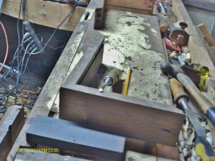 Top of the chisel is now almost a point, edge has a bit of a skew to it.   I can clean clear to the back corners, to get rid of the waste that my normal chsels can't get to..   Even made the "A-A" joint go together tighter....
