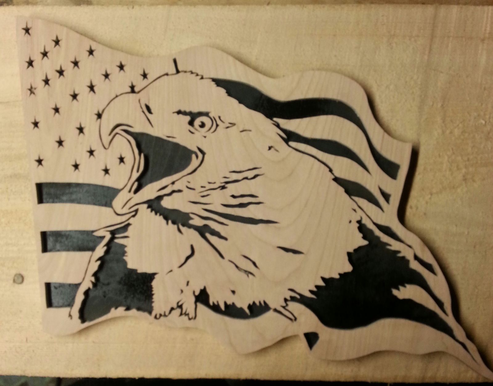 Done in one evening made of birch ply and is approximately 12"h x 15"l. I think it will go to the vet center in White Oak Pa. Thanks for looking!
