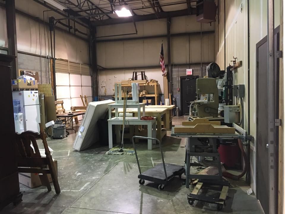 Previously we'd have 8-16 people working shoulder-to-shoulder, trying to work around piles of furniture coming or going, or awaiting repair, and generally a lot of junk sitting around.