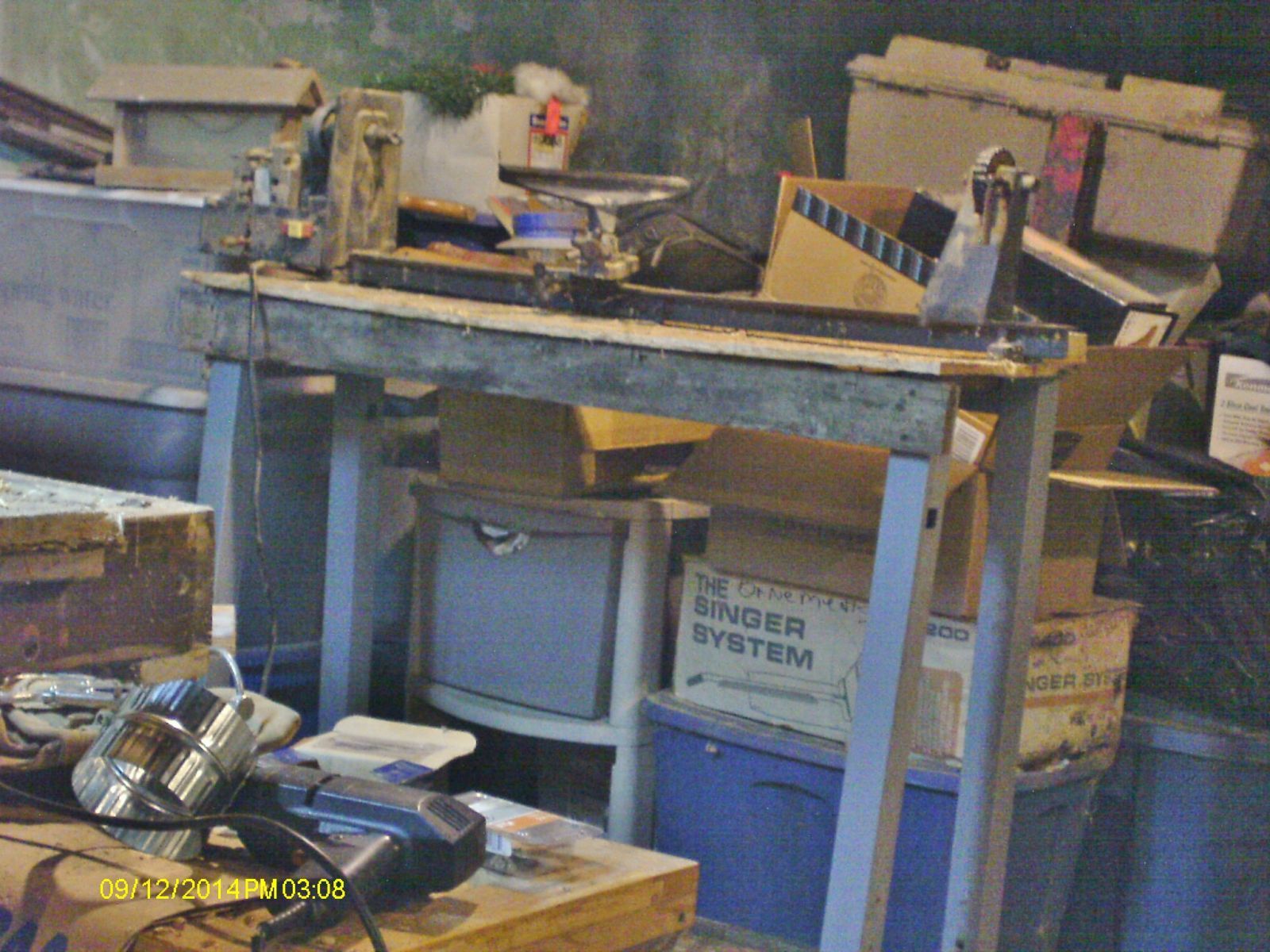 Had some parts from a metal loft bed handy. Added some osb and some 1x4 oak trim I found. Legs are 36" long. Have a single lite bulb right overhead, too.