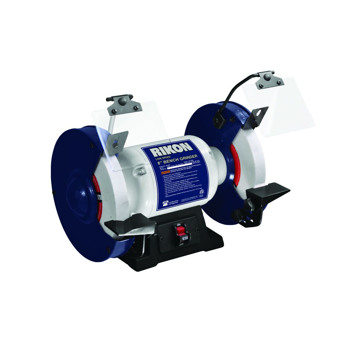 This grinder comes equipped with two 1" x 8" white aluminum oxide...