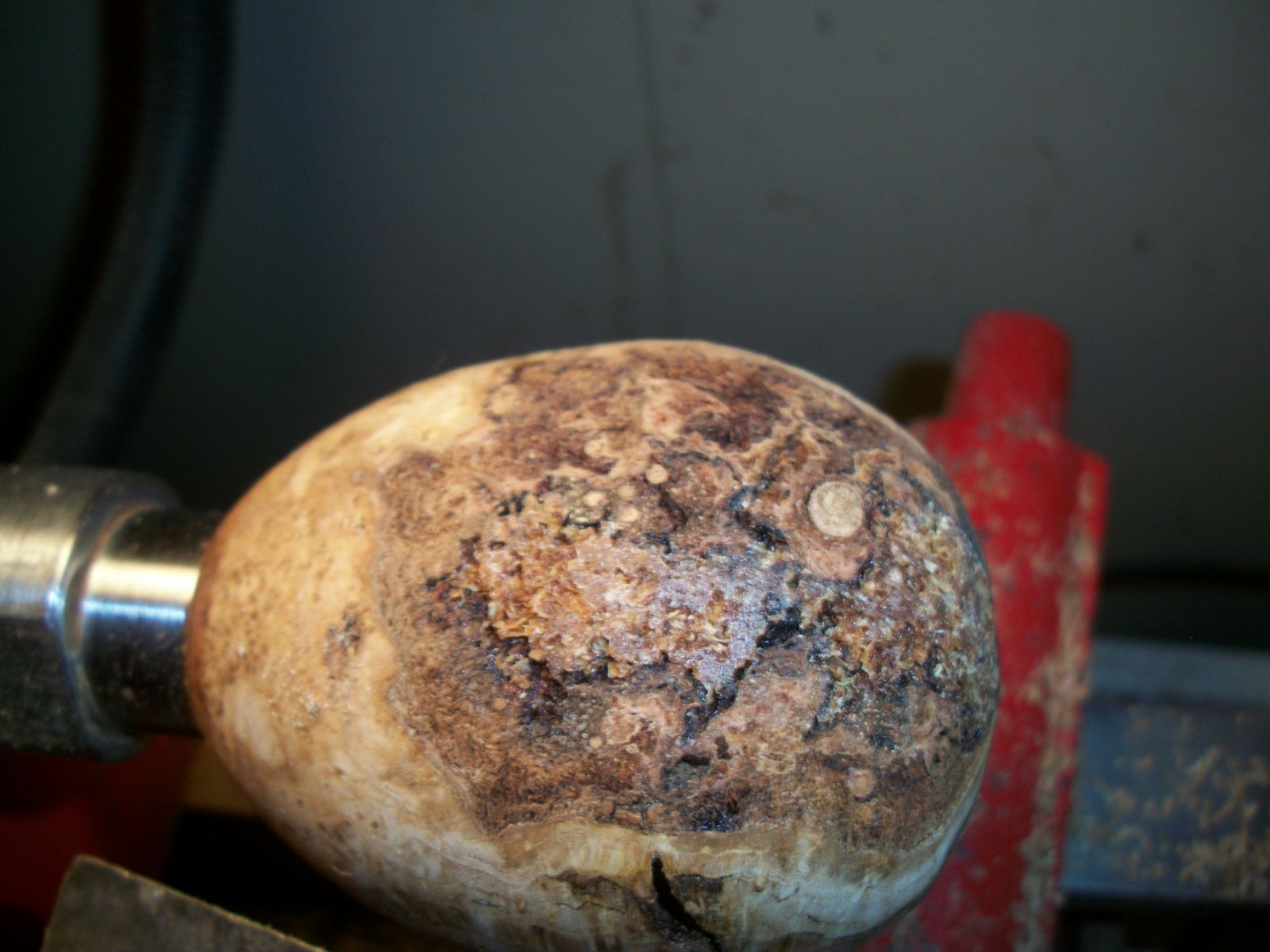 This is an updated view of an earlier picture. It's where I was rebuilding the wood. That whole dark area was rebuilt with the sawdust and CA glue that was shown as drying in the previous picture