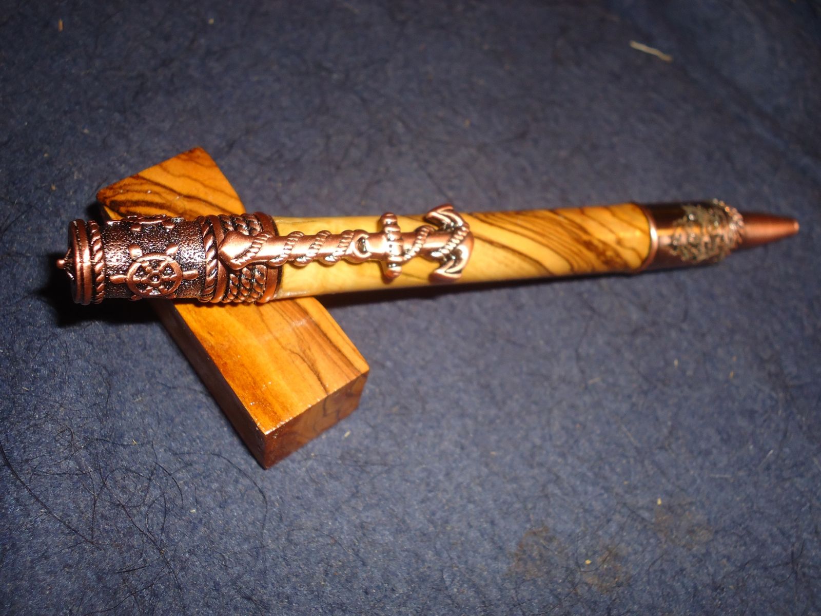 PSI Nautical Twist Pen. Antique Copper Finish Bethlehem Olive Wood Blank with Min-Wax Gloss Poly Wipe-On Finish.