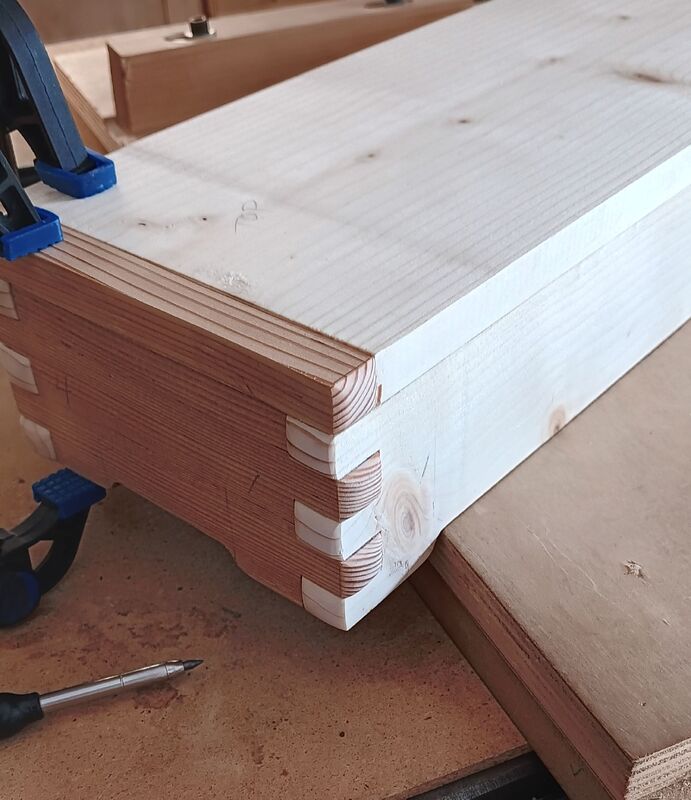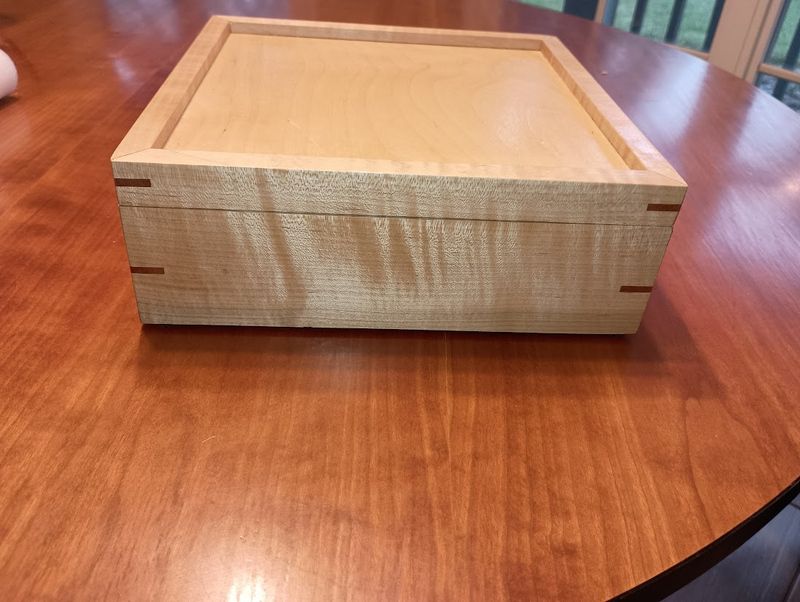 In process of working on a box for my gents saw. Shou Sugi Ban box with finger joints and Greene and Greene features. Everything wood.10 points -