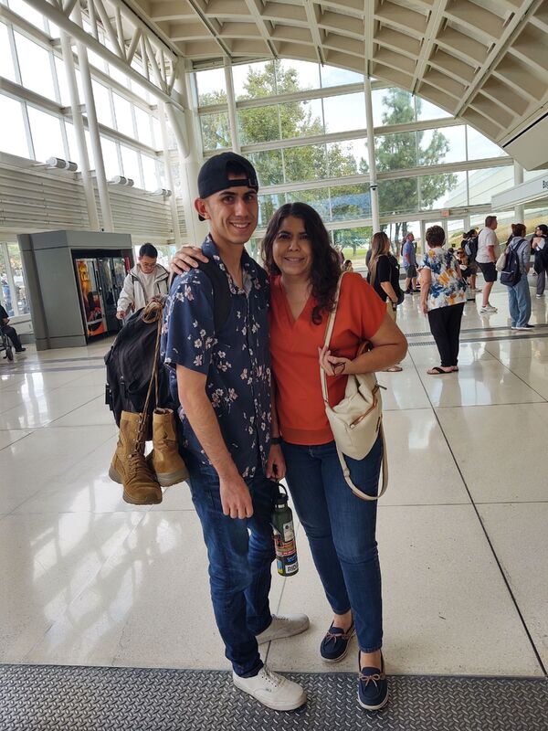Friday already! Son is visiting from AIT, graduated his UH-60 Blackhawk mechanic school and he's doing a two week layover here at home before he heads to his permanent duty station Ft Lewis Washington. Dad will be barbecuing for him and his buddies tomorrow as a welcome home sort of get together. We picked him up from the airport last Friday, he arrived just in time for his older sisters baby shower on Saturday, so this weekend is his weekend with his buddies. Proud mom with our son, orders to travel in civi's, no uniform, thus his street clothes, I always love seeing young military in their uniforms in the airports, but this time he had to come home incognito.10 points -