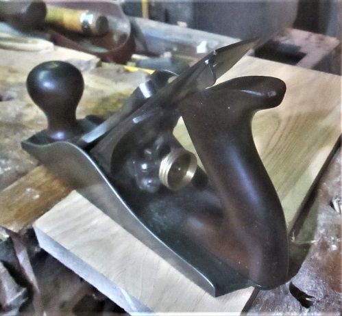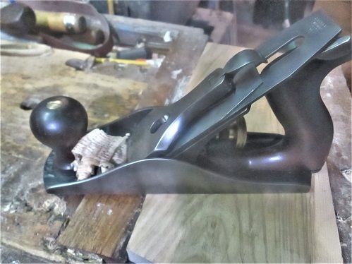 This thing appeared on my doorstep last week... Along with 6 "friends".. Task being that I rehab that #4 and send it back to Gene Howe...Took about an evening in the rehab shop.. Looks a little better? View from the back porch.. Tried out on a slab of Ash lumber....seems to work well enough..will ship this out this week.. Stay tuned..have 6 more to do..19 points -