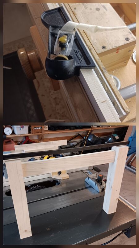 The theater shop has one overhead door that we use to unload lumber and load up set pieces to take to the theater. We rent the building but repairs are on us. The door is very odd sized, 73" wide and about 7' tall. The lower two sections are getting water damage. So rather than pay $1000+- for a new door (and we might get evicted when the current owner sells the property and re-develops), we (the shop manager and I) re-built the bottom two sections and will install this weekend. Less than $100 in materials, including paint and weather strip. We bought some #1 joist material that was pretty knot free (and could cut around most of what was there). We rip saw out the pith, yielding us some nice quarter- and rift-sawn stock.* Planed down to 1 5/16" to match the upper two sections. Bought a sheet of 1/4" ACX plywood and got to it. Most of the lumber was notoriously warped, but we worked around that. Both the table saw and the miter saw bound up when sawing. The other interesting thing is the plywood was made in 2022. So I guess they don't sell a lot of it because it was near the top of the 12" high stack. Below is the result, waiting for the glue to dry (exterior PVA) * Just as an aside, the ripping a joist is the same process I used to make the frame for the workbench in the photo. #1 rift-sawn knot free SYP is the result.8 points -
