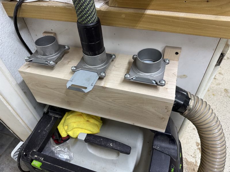 I have been getting tired of changing hoses on the shop vac every time I need to change tools so I built a distribution box with blast gates to solve the issue. Paul