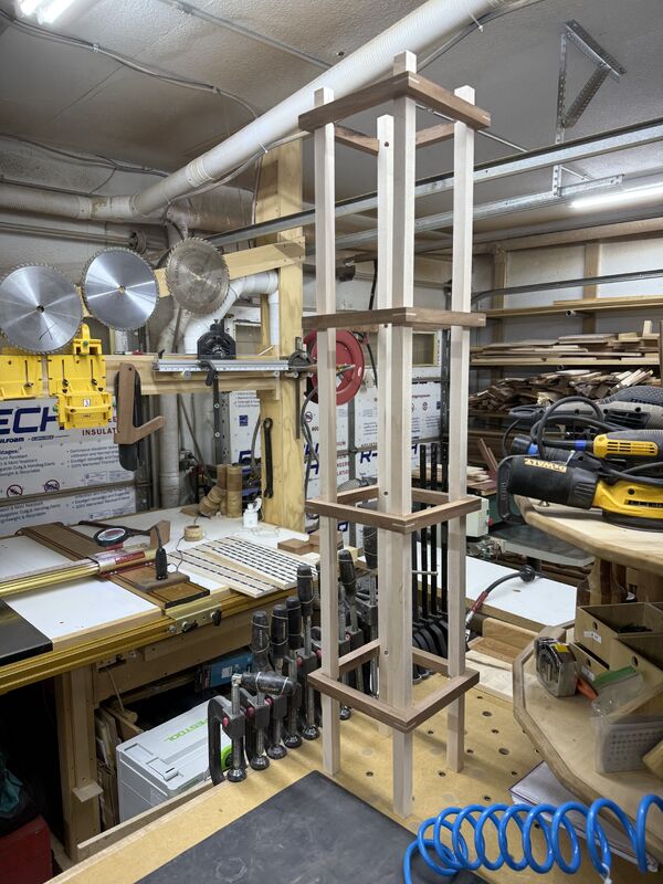 I have been meaning to build a storage unit for under the lathe for some time. I got the delivery of the maple for the closets so I decided to use some of it to build the storage unit. It’s a simple 6 drawer chest. I assembled the carcass today and milled up the drawer stock. Paul