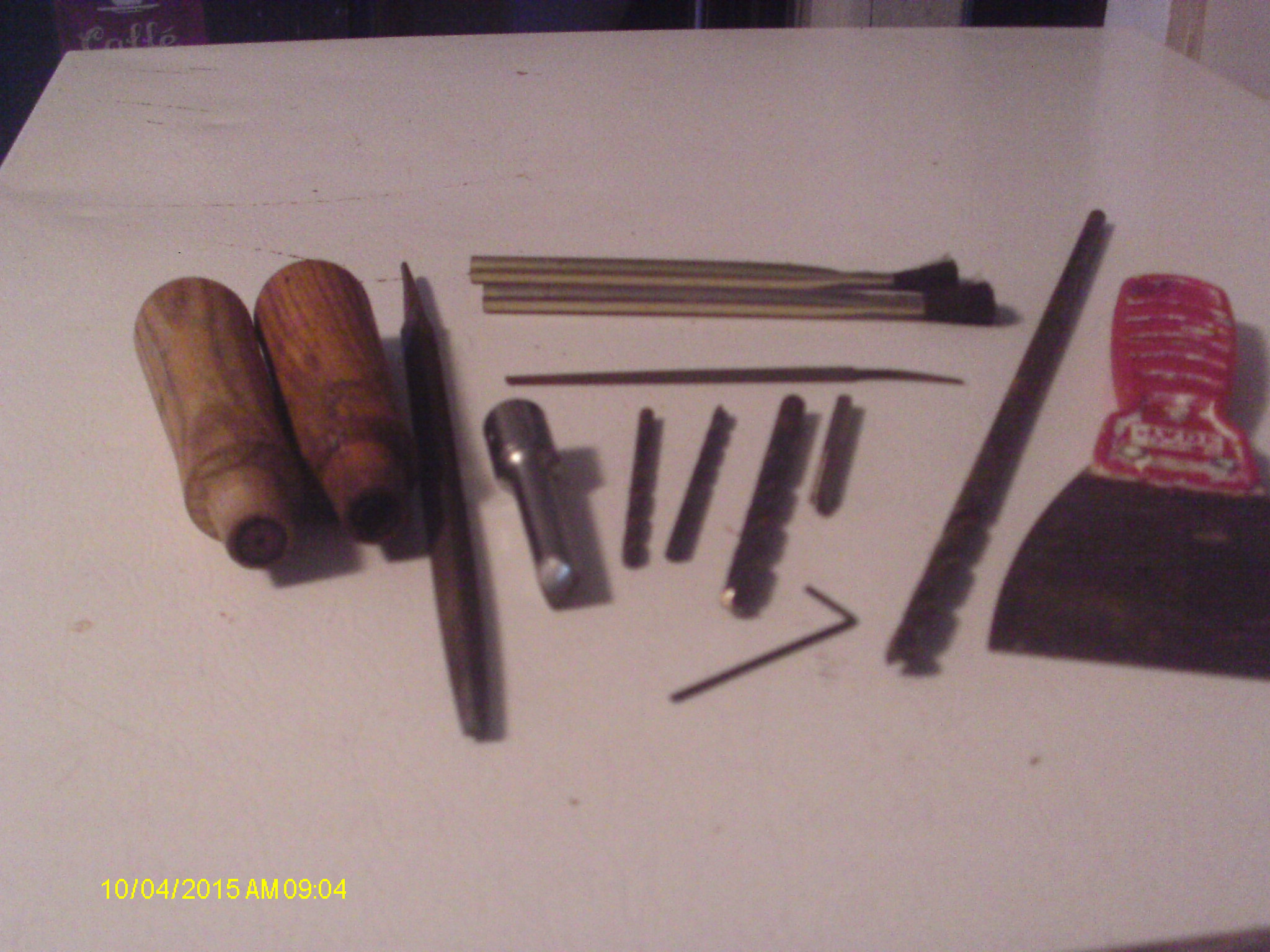Light, misty rain, and a bit of a breeze. 7 blocks one way. Then spent the rest of the morning STANDING around....only had $7 to spend. First item that came up that I thought I could bid on? A very SMALL Coffin smoother, almost the size of a block plane.....Bids shot right past the $7 max.....FAST.... ok, Plan B Watched for awhile, collectable cars, firearms, mini-mill, mini lathe( H-F one) electric hand drills, clamps, screwdrivers, and files.....Almost done with the stuff IN the garage, finally won a bid...."Choice" of four planes. $4 More on the choice plane later. Auction moved outside, still COLD, misty, but the breeze was dying down from hurricane levels. Watched a H-F 40" long lathe go for ....$25 benchtop drill press about the same. a few tool chests, a dust collector ($35) a craftsman 10" tablesaw ( like mine) went for $25. A snading center, with the 6" wide belt and the disc...$25 Finally on to the"box lots".....Had a box I wanted.....but I should have moved one item to another box...drat. Someone wanted THAT item. Outbid, but got choice of the others.....$3. Paid my bill...$7 total. And walked back home. Still had that #@$#@#$ misty rain. Didn't help to go under the trees, they were shaky off big drops. So, what did I come home with, besides an empty pocket? at least it all fit in one, soggy box. Had a second "lid" to try and keep things dry....maybe. The plane? A rusty Capewell No.4 With a steel frog, no less. Ok, we can rehab that, I think Note those shavings behind it? To think, I did NOT remove the frog, Royal PITA to do that. Best leave it alone. Wood was cleaned up, BLO wiped on/off. Sides sanded clean, sole was even flat, no cracks or pitting. The only part that really needed a lot of work? the chipbreaker was a bear to tune. Back upstairs, time to sort through the junk, and pick the goodies out The ruler way in the back is marked as a Sterritt (sp), haven't cleaned the other one up, yet. Center finders, and an angle finder, and a sanding block ( wagner brand??) next pile i did find a third Acid brush. Files for saws, Drag Link socket, allen wrench, a few drill bits, couple of Oak Handles, a SMALL tap, and that Hyde putty knife. The BIG file is magnetic...next Couple of cutting discs ( have the air tool for them) and a scriber from the MIA combo square. The rest of the box? Lots of bolts and screw, a few hose clamps, a brass threaded pipe(??)and other assorted stuff. In the first picture? You'll notice a few battery terminal cleaners ( 3!!) and a bronze "token". Token is from AutoZone, and is for checking/setting spark plug gaps. A few other things were just tossed...bad junk. Well, not too bad...for just $7? And a bit of walking ( cardio?) neede to add this to my morning coffee... Well...since I missed out on a Bailey #3, I guess this will just have to make do....maybe?