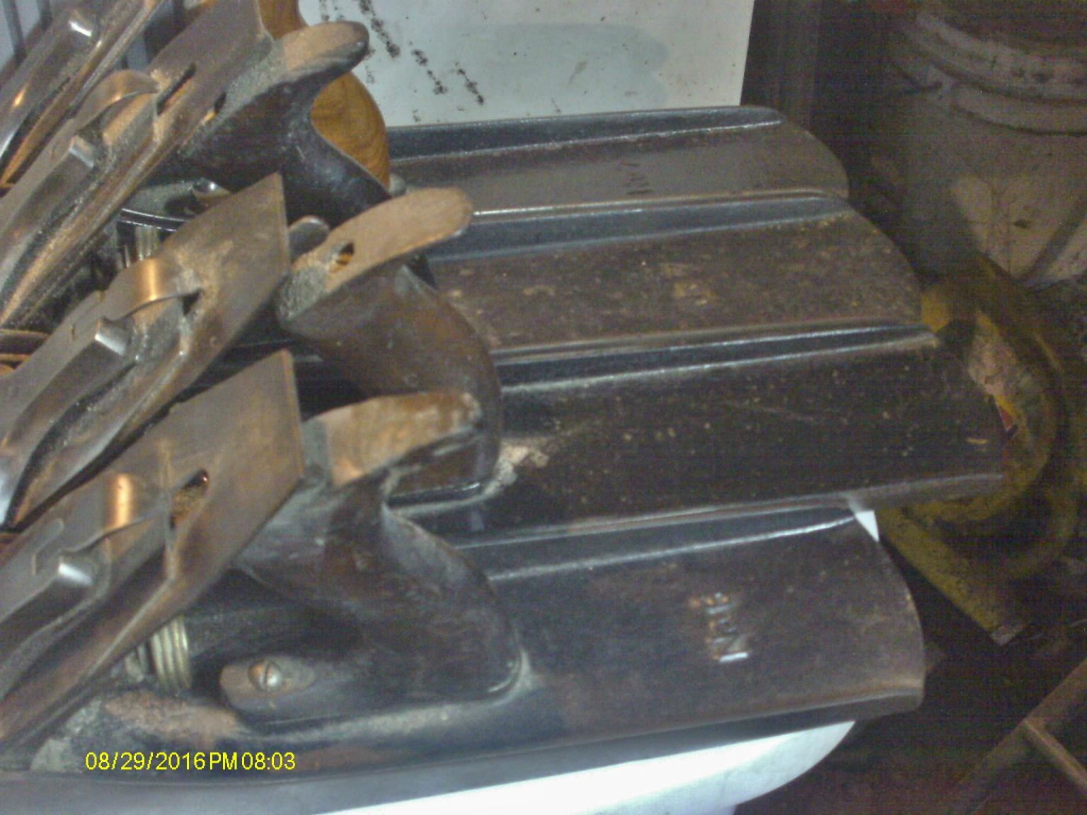 The sargent #414 just needed a hone and a clean up. The Bailey #5 Type 11 needed a wee bit more work. It had a crack in the side, wrong lever cap, and a bit of rust. Lever cap was changed out with a one I had in the "spares" box. That crack took a trip to Wallie-world. Brought home a tube of Loc-tite epoxy for metal. Dremel made a "V" groove along the crack. Applied a bead to both the inside and outside of the crack. Let it set for over a day. Beltsander to flatten the area back to smooth. Area is now stable, but doesn't "hide' the crack. Sole was flattened a bit as well. All the other parts were cleaned up. And now, the "Reveal" The Left side, without the crack. And the right side, with the epoxied crack. The "gap' under the plane is from the curved counter top. next a look at the back. Some paint is still on the woodworks. Wood is Rosewood. And the flattened sole Finally, the frontend With a more correct lever cap... Still need to hone the iron. Sargent is also completed, and working...