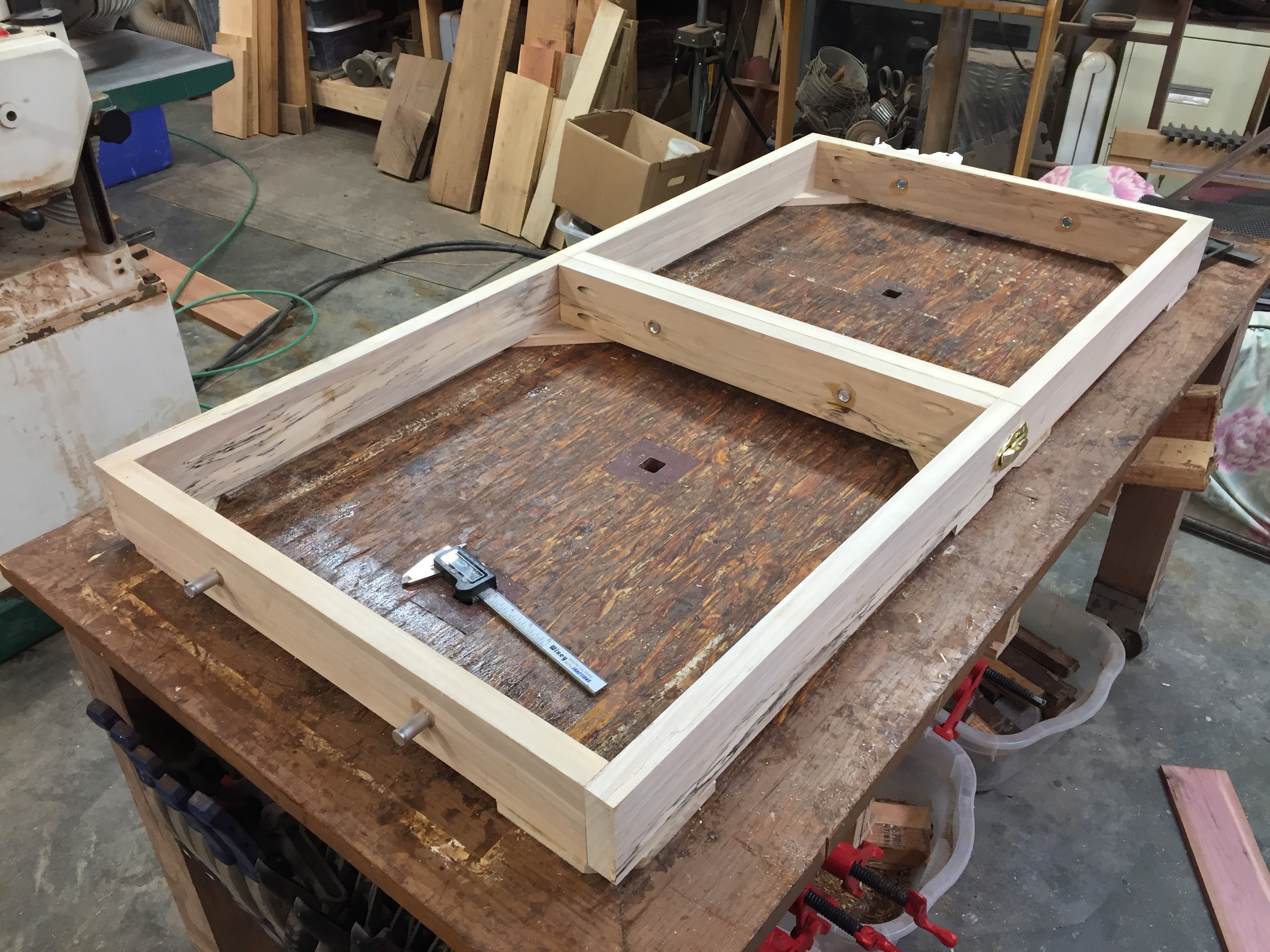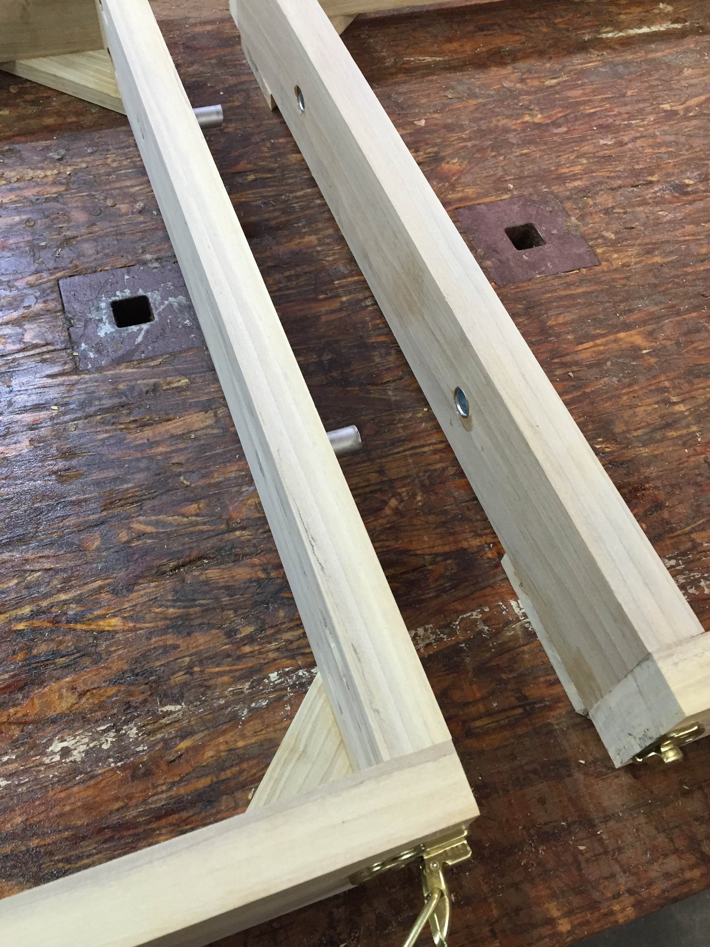 I finished a project yesterday for a customer. I can't tell you right now I know much about these, but he is going to send me a picture when he gets them setup that might help. As I understand they are used to setup model train displays. A piece of foam is placed inside the frame and then the display is built on top but the section are made so they can be separated to move the display. Plans were for 4' sections but he was wanting 2' sections. So I made the modification and built two boxes out of poplar for his display. The boxes or displays had to be built so they could come apart but had to line up each time you put them together. I made a trip to Lowe's and got some 1/2" aluminum bar and found some 1/2'x5/8"x1" washers as they were called. I setup on the drill press to drill the holes in the same spot on each board using a 5/8" bit on one end and a 1/2" bit on the other end. I used epoxy to glue the pieces in place. The frame is made of 1" poplar and the corners are put together with pocket screws. Latches are added on the outside to hold the sections in place so they don't move while the display is setup. The pins and bushings were tight enough I don't think the latches were needed but they were on the plans so I put them on. I took a piece of the poplar and planed it down to 1/2" and made the corner feet that also hold the foam in place so it doesn't fall out when picked up. He was quite happy when he came by yesterday afternoon to pick them up. As I said earlier, I will post a picture showing them in used when he gets his display setup. He is doing a model train show in a couple of weeks and needed them. This was a fun project to work on