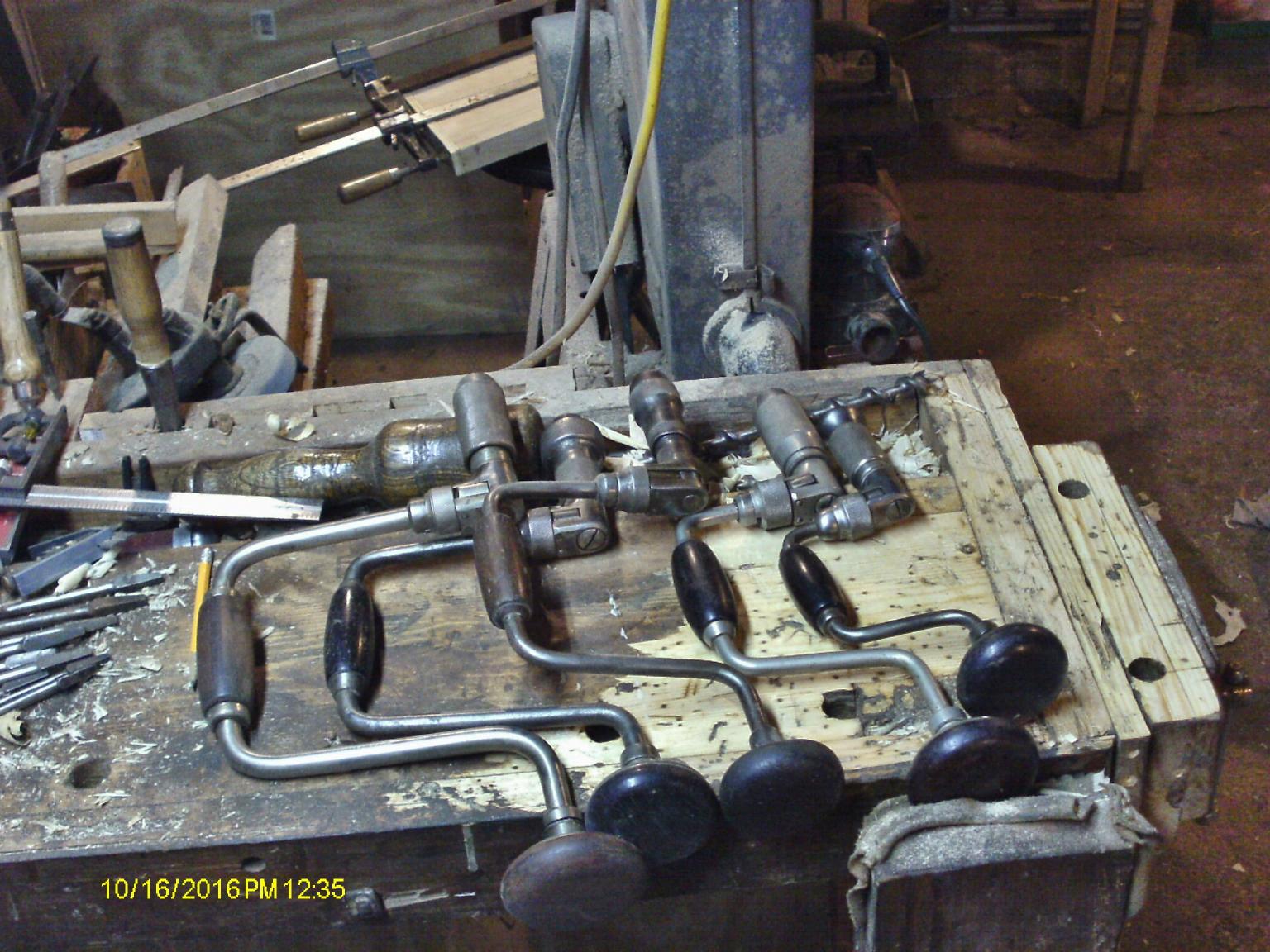 Here are a couple of my antique tools that are still being used... Brace with 1/2" and 1" spade bits. J.B.Ungerson - Barmen Germany is stamped on all three pieces. Robert Sorby Backsaw - 16tpi.