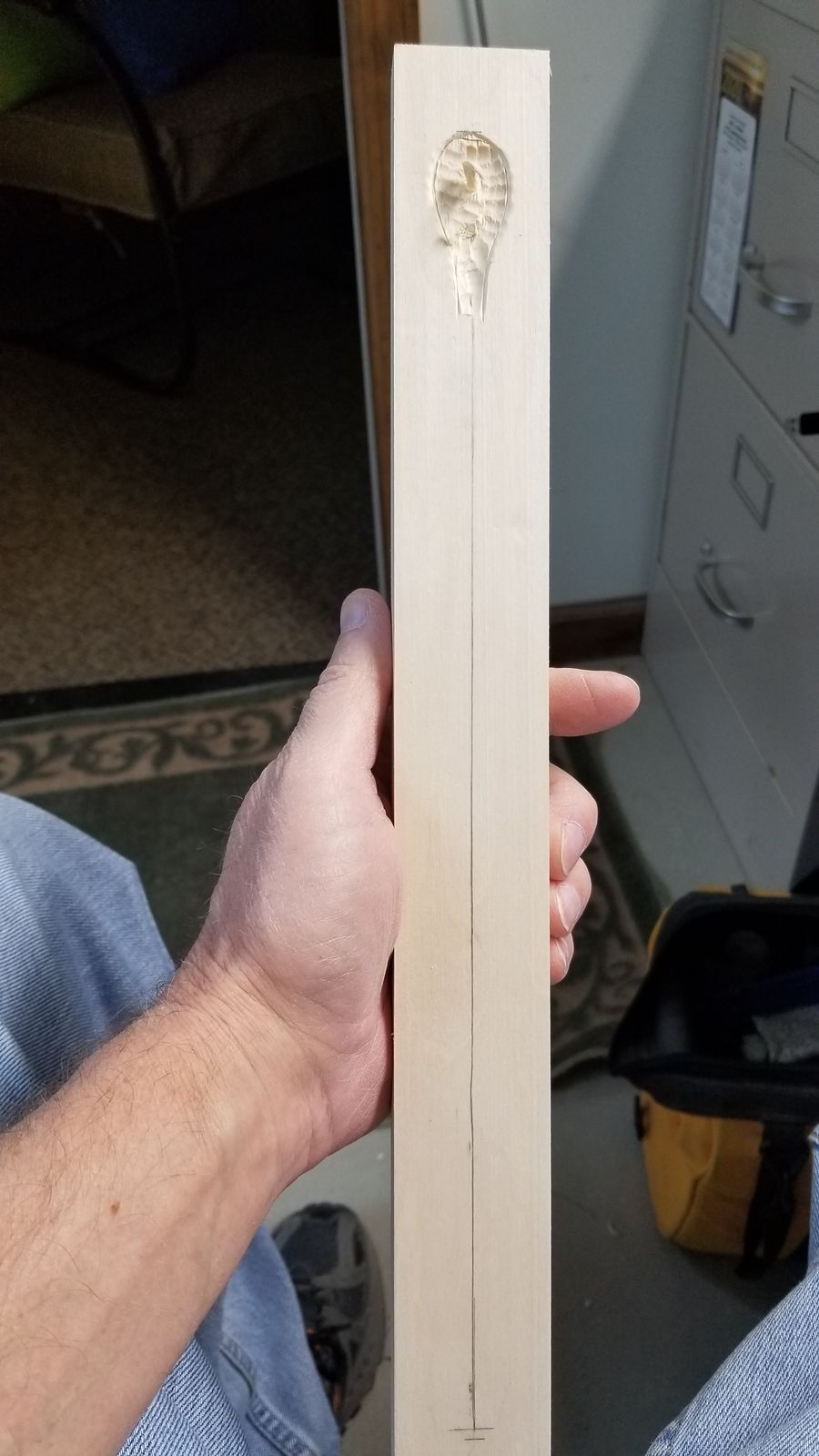 Thursday morning and lots of smoothing to do This is the hardest part of carving and this is what separates the boys from the men for not leaving any scratch marks on the carved pieces. Gene I used the same number blade for cutting the picture out then also for cutting all the pieces apart. # FD- SR 5 flying dutchman blade from The Wooden Teddy Bear. com It has nothing to do with all those teddy bears for it a wood working site. Order them 1 gross at a time and they will be much cheaper than the blades from the big box stores. I built this blade holder the week I bought the 788 in 98 or 99? I used 1/2" pvc with wood plugs in the bottoms. Can't remember for sure but there must be more than 20 tubes for blades and I bought some of all I could find to buy, anywhere........ fast forward, all those blades are still in that nice little storage container. Only two other blades I ever use is an Olson blade for metal sawing with the scroll saw...which has no teeth at the bottom of the blade sticking up from The Teddy bear.com and an Olson precision cut blade for cutting away the out side of the carving pieces I don"t need. Its also a reverse tooth # 5 but it saws and last longer but when new it wants to go faster????Only word I have for it as it is more agressive but not as easy to precision cut when needed on inside sawing!!!! And its from The Teddy bear.com also. This carving I\m working on now I used the same blade. This bull I'm shooting at you are my own opinions. Lot of people out there has more opinions than they got brains and again this is just my thinking... Lots of wood to smooth so I'll check in when more has been done. -