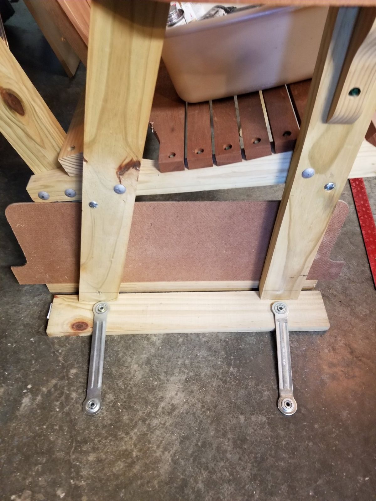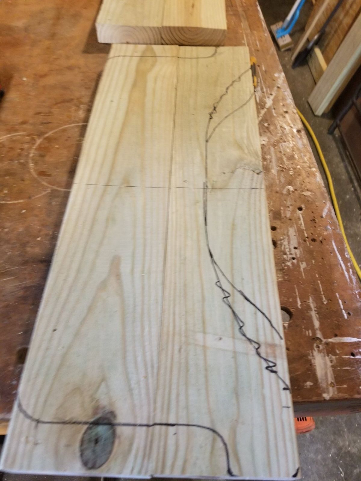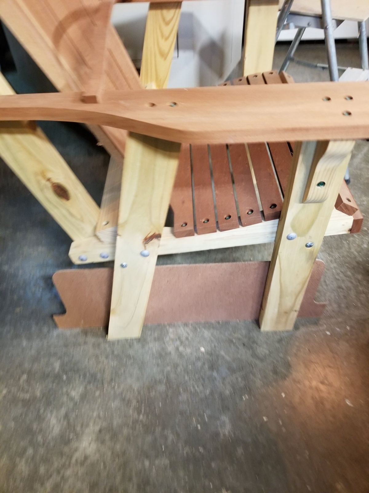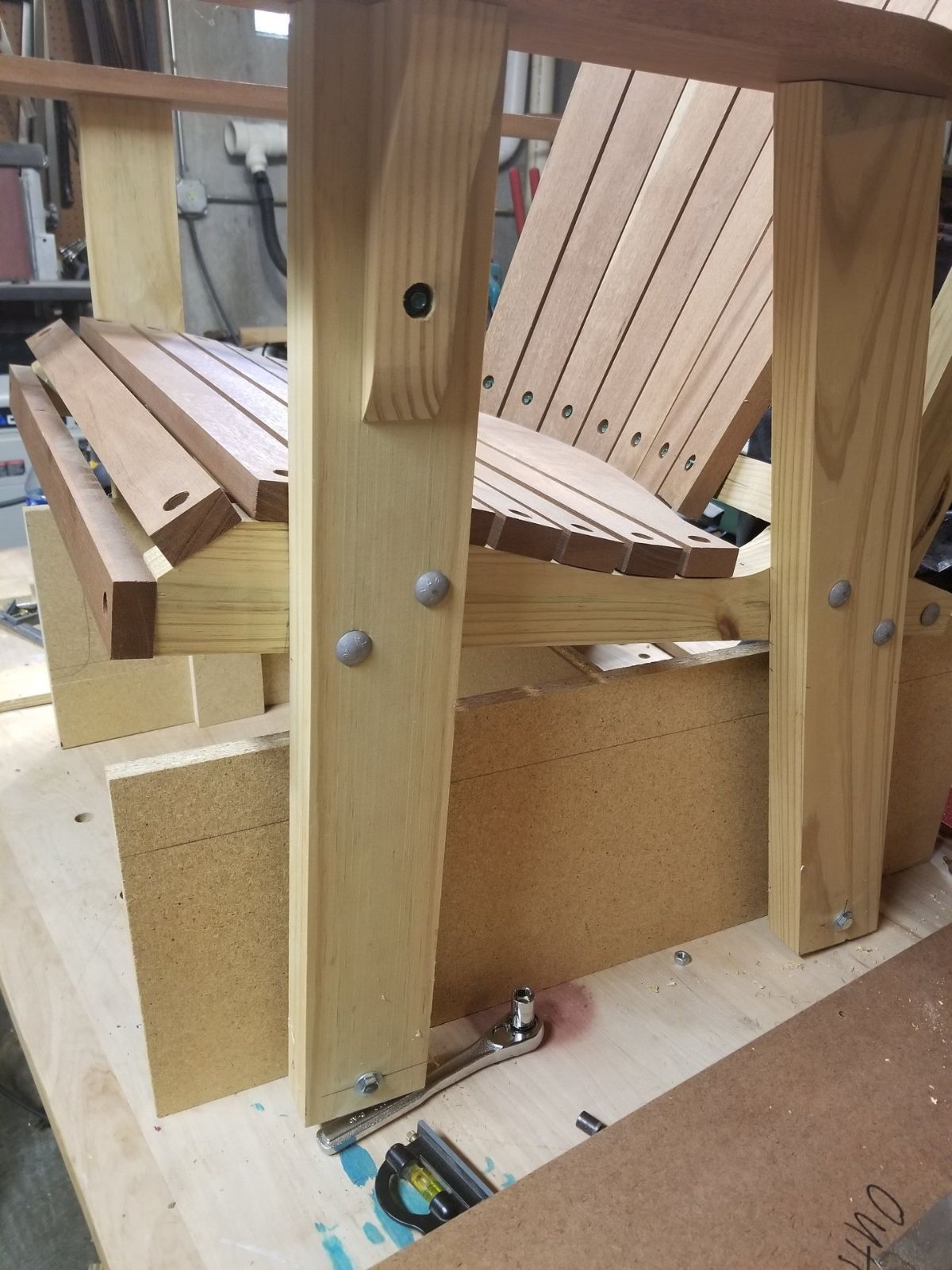 Another one of the projects I got to a point and wasn't sure I wanted to use all my Sapele on. Stopped and think Im gonna use it to get rid of it. The base has been an issue. I borrowed a sample chair from a relative but took it back before I got the holes, etc on the base pattern. After a couple days of refiguring,adjusting and rebuilding I think I've got it. The bases are treated for ground contact.