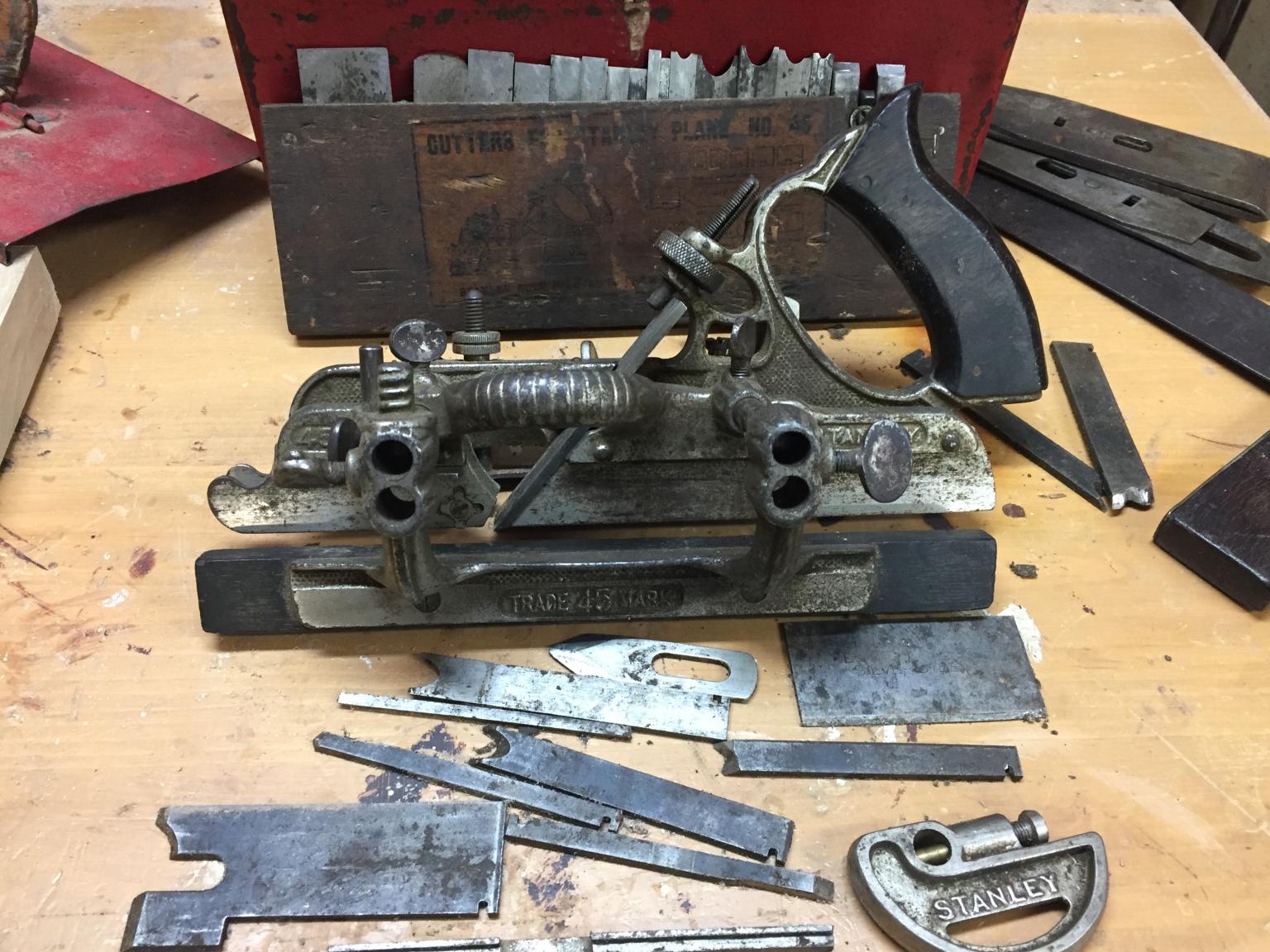 It has been a while since I was out Patriot Picking, but Tuesday, my wife and I made it down to a flea market and I ran up on this Stanley No 45 in the Metal Box. I currently have one with an 1890's patent date in the wooden box and got to looking at this one and it spoke to me so I had to take it home. It looks like it had everything in the box with the wooden holder for the blades along with several other blades laying loose in the box. The box was in good condition and the lid fits nice and tight. It has been used, but doesn't appear to be abused. I am looking forward to cleaning this one up. It has a patent day of July 09, 1901. A nice find and look forward to getting it going.
