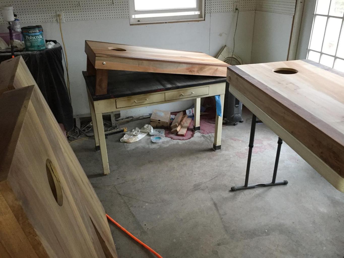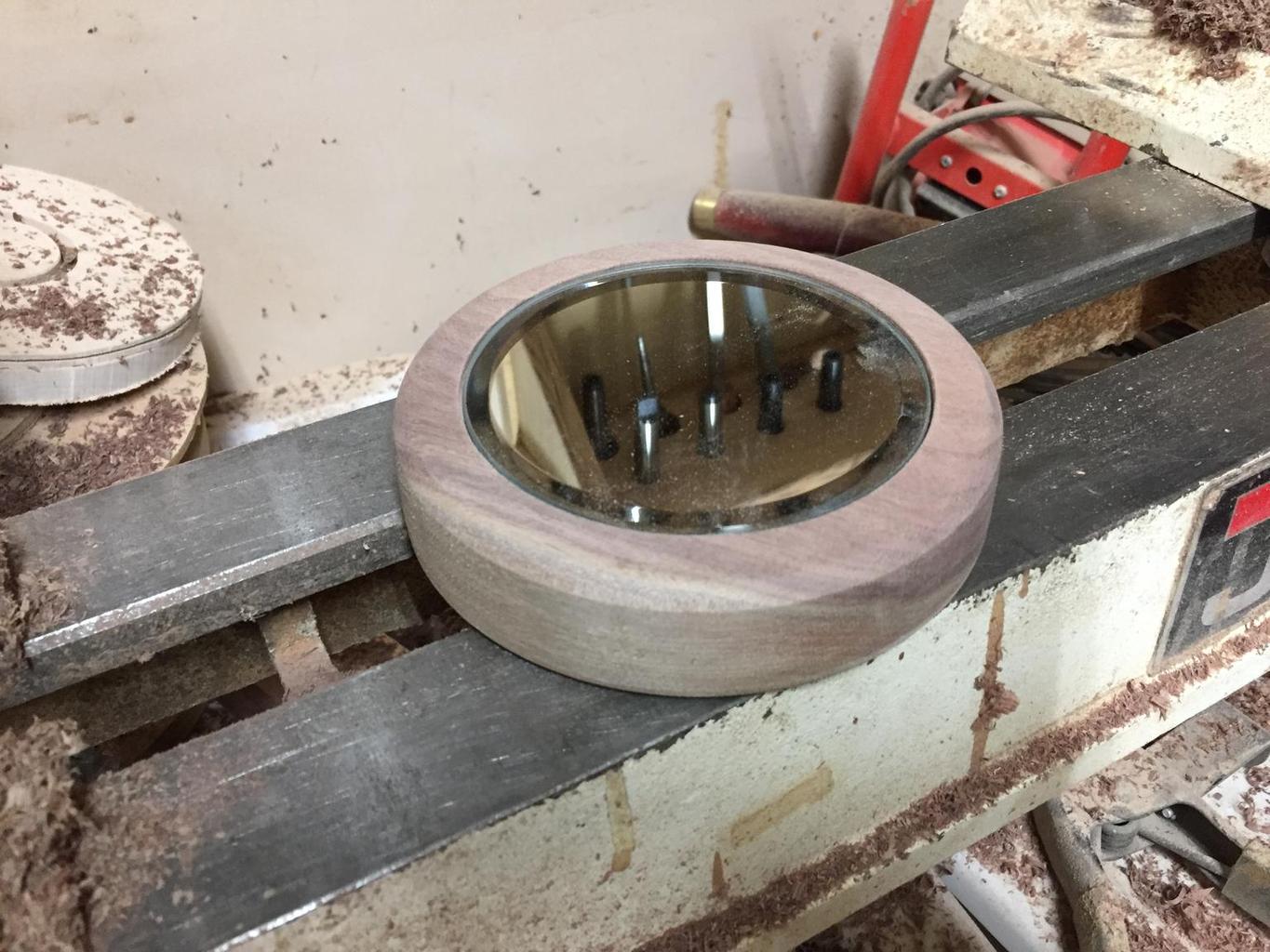 December 7th a day that will live in infamy. A special day to remember. A day to stop, reflect, self-inspect and support those of the “Greatest Generation” that answered the call. May we never forget that they didn’t hesitate but gave their all to make this the Greatest Nation on this earth. At the shop shop we are busy filling Christmas orders now that we have finished our last show of the season. Cornhole boards are are still high on the list. Two more sets in the assembly area. and two more sets in the finishing room. Six more sets to finish this coming week. I started last night roughing out some blanks for some Walnut hand mirrors. Turned one down close just to check my measurements since it’s been a while since I’ve made these. The back side will get a Maple insert with an initial engraved in the center. That’s what it looks like right now in my shop, what’s on your weekend agenda? Share your projects and pictures. Whatever you you do have fun and be safe. -
