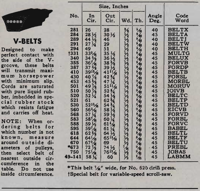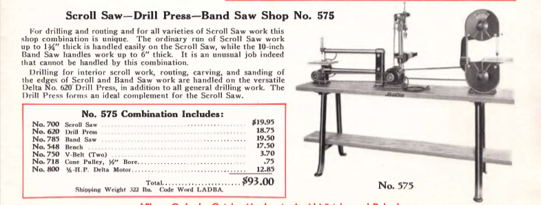 I've found the information in these catalog snips very useful over the years redoing my old machines. But every time I've needed them I've had to look to find them, so I'm putting them here so I can find them easier. Hopefully you will find them useful yourself. Around 1972 Delta changed the catalog numbers. Instead of ordering a pulley and having to specify the bore size you ordered by a specific catalog number. These and other 5 digit catalog numbers were then again changed around 1983. The new numbers were 12 digit. The below links will take you to the 5 digit to 12 digit conversion tables. Part one. http://www.vintagemachinery.org/pubs/detail.aspx?id=1087 Part two. http://www.vintagemachinery.org/pubs/detail.aspx?id=1088 The 718, and 720 pullies were used on quite a few Delta machines over the years. They are commonly found on the 4 speed scroll saws, wood/metal bandsaw, and a few others. The 932 was commonly used on the Delta 9", 10", 11", and 12" wood lathes. This is the pulley that matches the lathe headstock pulley. The 985 is more commonly referred to as the DP 260 pulley. It is the matching motor pulley used on the smaller Delta 4 speed Drill Press's. It is used on both the standard, and Slo-Speed Drill Press's- 9 replies