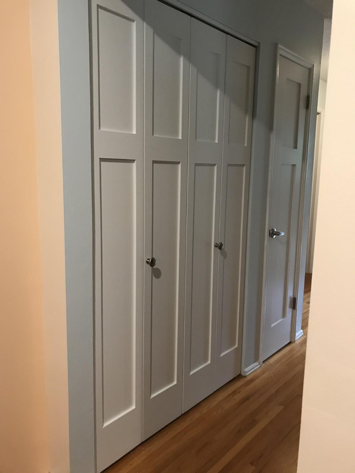 My interior door project is done, finished, and complete. 28 new doors, 32 doors painted. Also, 4 bedrooms painted, new curtains in one bedroom, and a new bed spread in another bedroom. Thanks for looking. Danl