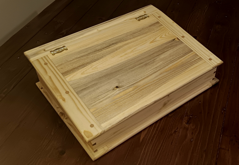 This is a Shaker style Lap Desk that I made for my eldest grandson. It has a pencil trough slot at the top (zoom in). The Lid has a brass flap stay on the left and brass hinges. The grain is awesome! Zoom in and look! It has bread board ends. .... and hand cut dovetailed corners. Thanks for looking! Cheers!! MrRick