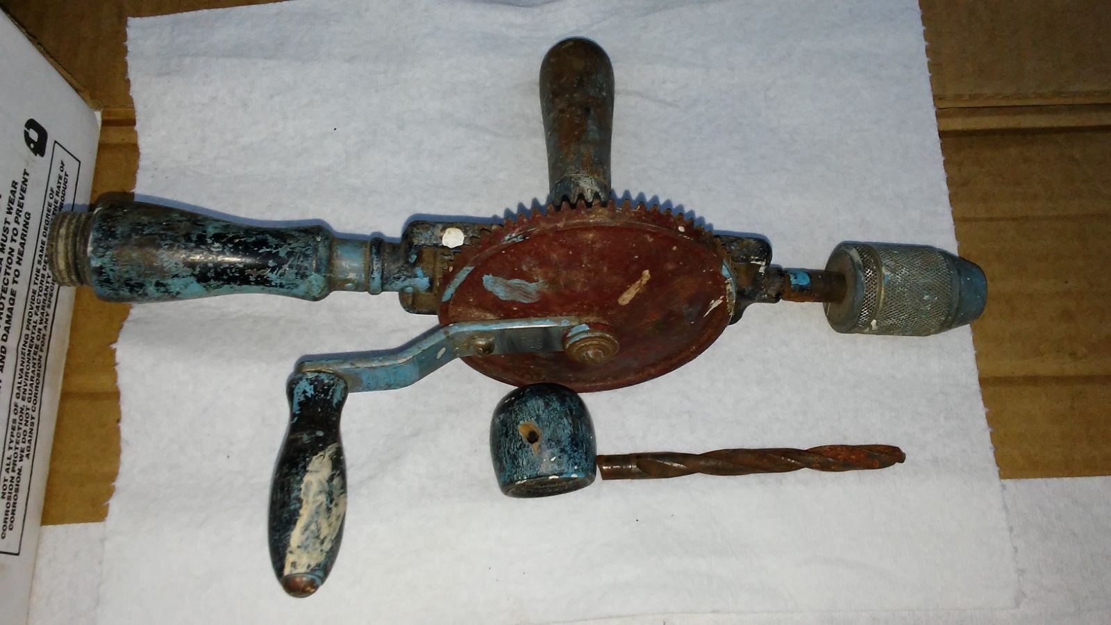 Stopped in at a local indoor "flea market" yesterday...picked up these treasures. Grand total with tax +$13 or $1.625/ea for the 8 items. The pruning saw maybe has been used 1 or 2 times. DIB price tag was $19.98. It replaces my old Fiskars pruning saw. The egg beater is a no name, but like new condition...wooden handle & crank knob, but nylon gears; the chuck is as valuable to me as the rest once I remove the stuck 1/4" twist bit; might be a good beginner tool for my oldest grandson? The Karbo-grit is more of a novelty than anything especially since in OB although the grit surface (fine) is very good. I always can use an extra 1/4 chuck key + the cord retainer; The drill bits in the wooden container Is suspect are from the late 40's to early 50's. No name brand. Originally included 9 bits but only 6 are there. No 1/16" Label is marked "For Hand, Breast, Post, Bench Drills. The X-Acto handle and blade is new although the plate has slipped in the back. The Copper rivets ~3/16" dia. x 3/8" L. Tower Mfg, Madison, IN; original price tag $2.49 I use to use similar to "roll" upper main bearing halves out; maybe make my own jeans now or something...lived in Madison from 1953-1955. The auger bit is #8 (8/16 or 1/2" by 12"L marked Van Camp (thanks @John Moody). Former Indianapolis Hardware & Tool Company Carbide attached particles to a copper plate attached to a wood block Cat #9-3002 Original price sticker of 25 cents