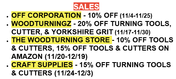 Our Christmas Project is underway. Help us to make a military family's Christmas one to remember! Check out all the awesome prizes and details here- https://thepatriotwoodworker.com/forums/topic/42294-adopt-a-warrior-family-for-christmas-2025/ Our Patriot Turners- Many thanks to @Fred W. Hargis Jr who gave us a heads up on some good news from Woodturners Wonders. Many of us purchase supplies from them! What's Coming Up- Last Friday's Tool Talk, from Cindy Drozda, is available on Steam Yard- https://streamyard.com/watch/nFhunNEiiBP6 Ashley Harwood's 2026 Winter class schedule is filling up fast! Click on the image for link to more information and registration For The Newbies- Craft Supplies USA has posted a couple of videos on making cute little Christmas ornaments. These videos also have great instructions on how to improve your skew chisel skills! In keeping with the ornament theme, Tim Yoder does an icicle snowman. Great spindle work practice. If your turning workshop isn't heated all of the time, Tim Yoder has a suggestion for a "Go Bag" for some of your supplies- Tomislav compares spindle gouges- Expand Your Horizons- Sam Angelo demonstrates embellishing a bowl using colors. Our member @Gerald often used colors for embellishing his work. Carl Jacobson makes a Hoppy Christmas frog. Some turning and some woodworking- Turning Time With Easy Wood Tools- EASY WOOD TOOLS gives back to the community in so many ways. Please consider participating one or more of these awesome events! And, consider 100% made in AMERICA products from EWT for your next purchase! Here's some of the places you can find Easy Wood Tools products on sale- Come watch the EWT Demonstrators in action. Learn about the tools and their other fantastic products. Get your questions answered about the facts and myths of carbide turning. @Jordan Martindale New Turning Items- @Fred W. Hargis Jr told us about the changes at Woodturners Wonders. I received this in an email about free shipping and sale items. Click the image for link to their site Mike Peace reviews a mandrel setup from Record Power Details from Record Power- https://turningtools.recordpower.com/small-projects-mandrel-saver-set/ Available in the US from Turners Warehouse- https://www.turnerswarehouse.com/ Tim Yoder has a new line of "wooden" measuring tools. These short videos introduce them- Axminster Tools has a new smaller Perform Chuck- https://www.axminstertools.com/us/perform-woodturning-chuck-t04m-113639 Everything Else- Safe turning