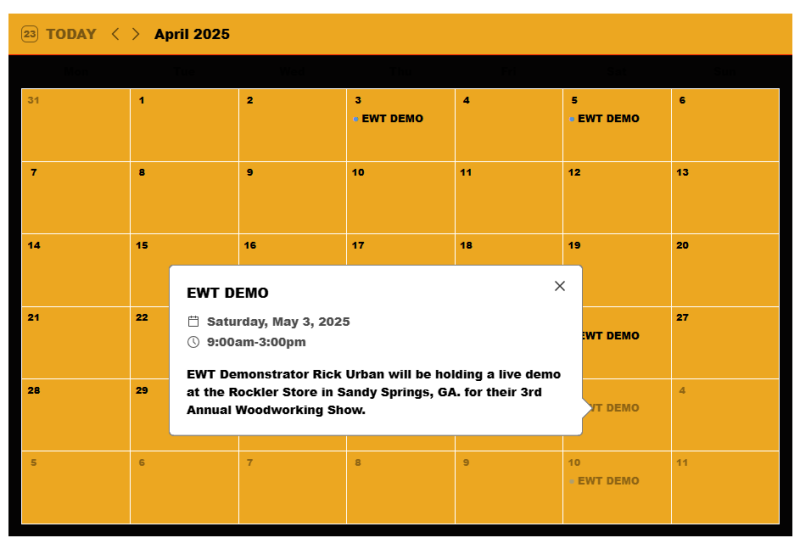 Cruising through April! Our Patriot Turners- @Gordon posted a question about wood identification. Specifically, he scored some really nice pieces but was uncertain about the species. Check out his post and see what our turners thought. If you have a better guess, I'm sure Gordon would love the input! @calabrese55 posted a great little jig in our Turner's Tips Sub-Forum. This neat little device can really help you dial in the correct size for chuck tenons or mortices. Head on over to the sub-forum and see more images and how it works. @RustyFN got a good start on another "basket weave" vase. These turnings sure do take a steady hand and awesome eyesight! See Rusty's post for additional images and more progress @Fred W. Hargis Jr gave us a look at his segmented ring, coin holder progress and details about how it is coming along. Fred posted images of his progress and details of how he accomplished the turning As his turning is nearing completion, Fred wondered if there is a way to burn an embellishing ring on the surface circumference of the turning. Our members offered suggestions as to what worked for them. If you have a technique that works for you, please give Fred a shout. From The Patriot's CNC Forum, @4DThinker posted his work on creating a turning tool handle. It turned out really nice! More images and the completed handle are shown in his post- What’s Coming Up- Click on the images for links to more information and registration. If you missed the live Spring Vendors Showcase, you can watch the replay. Cindy Drozda's Live Tool Talk- For The Newbies- Not every piece of wood is safe to turn. In this video, Tim Yoder describes a defect called "wind shake" and why you should be aware of the dangers. Sharpening your HSS tools takes practice. In this video, Mike Waldt demonstrates methods of making repeatable sharpening grinds. Richard Raffan explains the importance of knowing the difference between a bowl gouge and a spindle gouge. Personal safety could be compromised and tool damage can occur if used improperly. Expand Your Horizons- Neat idea, from Sam Angelo, on chucking a turned box without the use of a tenon. Turning Time With Easy Wood Tools- The Easy Wood Tools "finisher" is an all around turning tool. It can be used to remove material during spindle turning, create coves/beads and even smooth out the tool marks left by other tools. The finisher is available in every category of the Easy Wood line. Depending on the size of the finisher, the carbide cutter may be different. As with all Easy Wood Tools, the cutter identification is etched into the shaft of the tool so you will always know the correct cutter for that tool. Using the finisher is straight forward. The tool is held horizontal and the cutter contacts the turning at the horizontal center line of the work. The depth of the cut should not exceed 1/3 the diameter of the cutter to avoid vibration thus creating rough surfaces. The finisher demonstrated by Craft Supplies USA- Free demonstrations from The EWT calendar https://www.rockler.com/retail/stores/ok-oklahoma-city-store https://www.rockler.com/retail/stores/ga-sandy-springs-store?utm_source=local&utm_medium=organic&utm_campaign=sandy-springs @Jordan Martindale New Turning Items- A new face shield/respirator reviewed by Mike Peace. The link to the manufacturer- https://microclimate.com/ Sorta reminds me of the helmets used by the NASA crews. Everything Else- Safe turning
