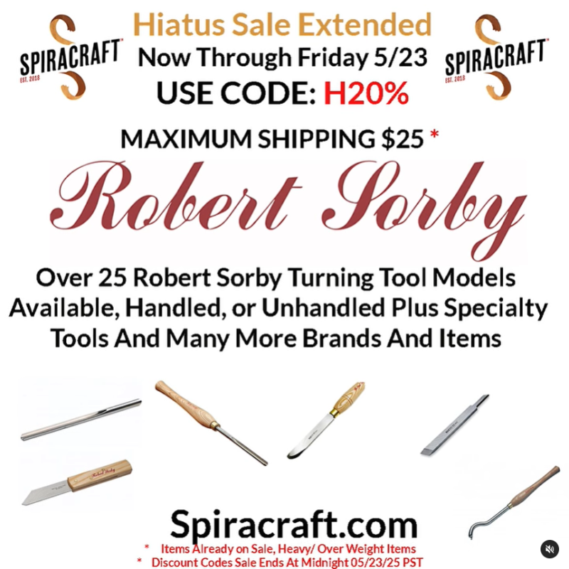 Raining again! Our Patriot Turners- @Fred W. Hargis Jr updated us on his progress with his cool segmented coin holders. He has made some adjustments in his technique and describes them in his post. @RustyFN is teaching at his local Woodcraft. He got some practice in with this bowling ball. It didn't go quite as planned as Rusty describes in his post- What’s Coming Up- Click on the images for links to registration and more information For The Newbies- Sam Angelo discusses the difference between a traditional bowl gouge grind and the "Bottom Feeder" grind. Tomislav Tomasic posted a video that includes a new safety feature that protects both the operator and the lathe. I hope it becomes a standard feature on all lathes. Expand Your Horizons- A nice article/tutorial in Popular Woodworking, from Jimmy Clewes, on turning a winged box. The link to the tutorial- https://www.popularwoodworking.com/projects/turned-winged-box/ Tim Yoder does some threading with an awesome looking threading "device" The video is apparently a little old. This is the link to a newer version of the jig. https://chefwarekits.com/Threading-Jigs-c9880435?srsltid=AfmBOorAAUTaQZHrT_dOYeJamCRCvOW1p_t4UJMLP--Wcow5aFwbgsj7 Turning Time With Easy Wood Tools- Most of the Easy Wood Tools carbide cutters are available in the Negative Rake configuration, identified by the "NR" notation in the descriptions. The negative rake cutters are less aggressive compared to the the "original" style of cutter. The negative rake design was originally developed for acrylic/hybrid blanks to be turned with less chipping that occurred with standard HSS and or standard carbide cutters. They work equally well on wooden blanks, especially during hollowing. Tools utilizing negative rake cutters are used with the same presentation angle/position as the standard cutters. For the Easy Wood Tools users "across the pond" a nice discount on the products- @Jordan Martindale New Turning Items- Reviews, something new and sale items. Tomislav unpack and reviews the Mike Mahoney Hollowing System Click on the images for links to the suppliers. Starbond- Woodcraft Spiracraft Everything Else- Safe turning