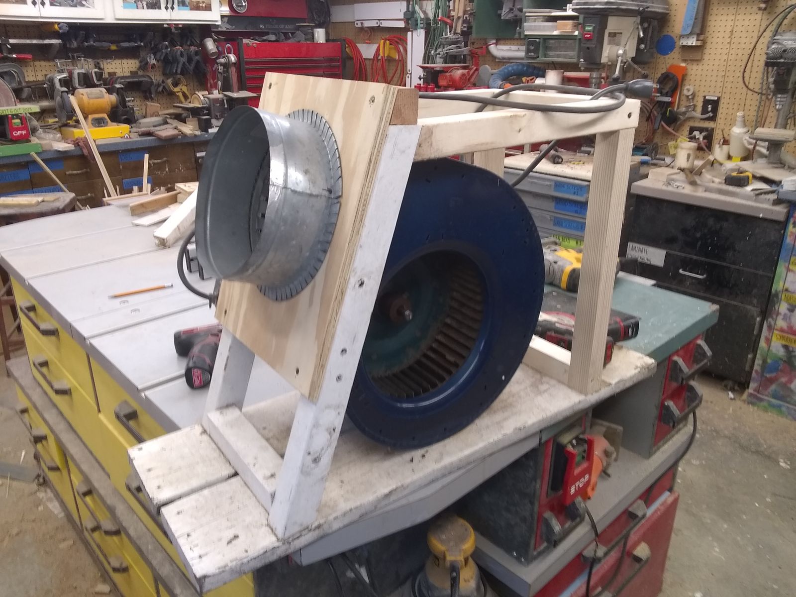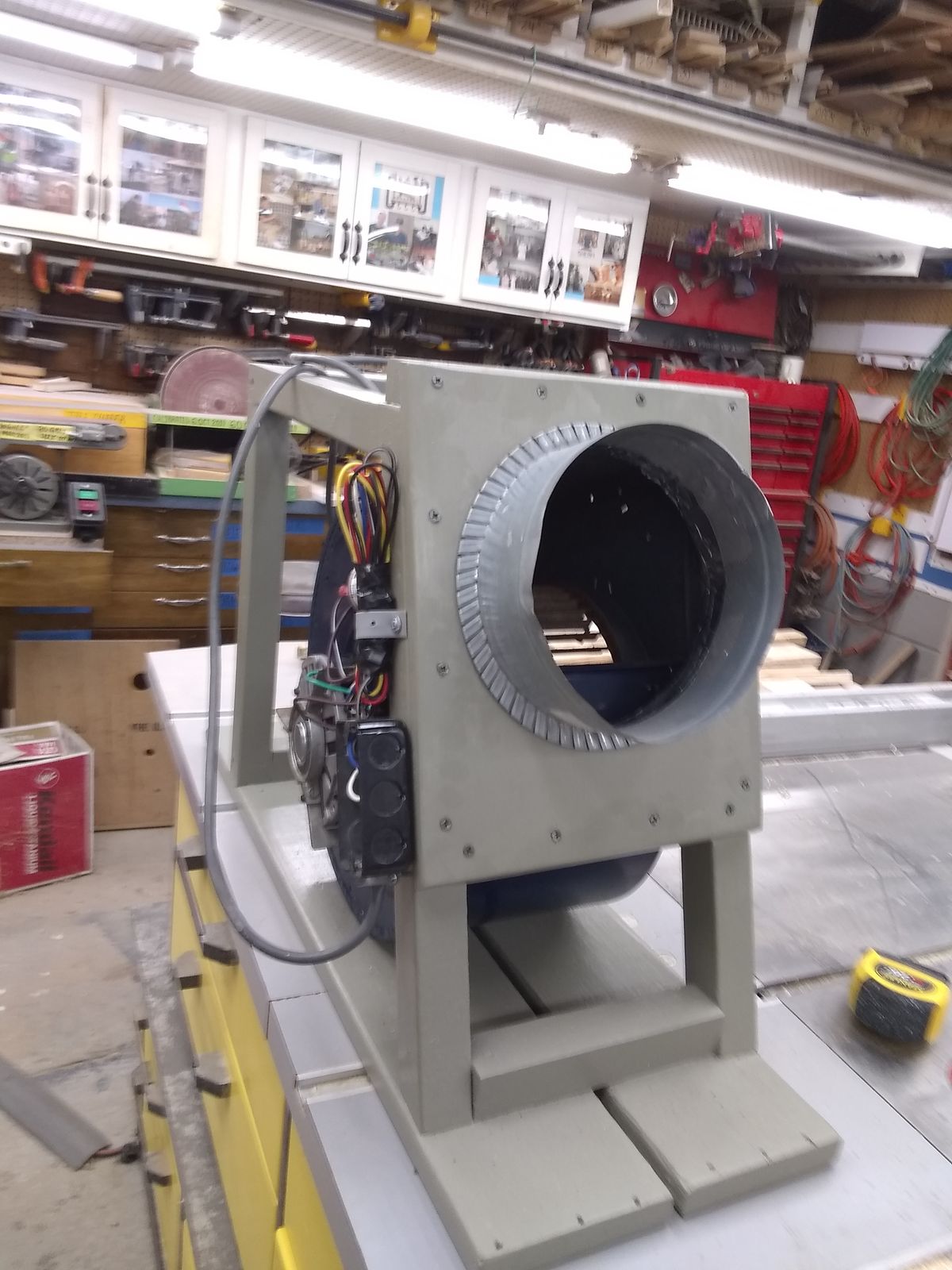 Back in 2014 someone gave me a old house furnace fan assembly. At the time I made a quick sled and put in under my crawlspace. Had a timer to go off every 4 hours for 30 minutes. Works well on dealing with damp musty smell. Well the fan motor died. So I had to drag it out and decided now was good time to do some rehab work. Replaced a few pieces that as scrap were okay but since I had to drag it out for the motor, we are fixing it up. Buddy gave me a new motor he had unused so I installed that after I painted the framework. Wiring needed some cleaning up. And finally done screwing with the motor I set the cage so it sits correctly. Then plugged it in and turned it on. OOOPS. Had this on my bench and pointed toward ceiling. Instant Sawdust Storm. Even the cat that sleeps in the loft came down and left. Dragged it back into the crawlspace and put it back and plugged it up. All done, just took a few days to get everything in order.