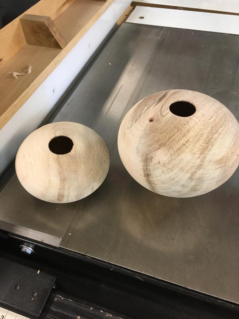 My neighbor had some tree work done and I caught the cutters and asked for the river birch and the limbs they took off a live oak. Doing some hollow forms with the oak and it has some great grain and dark lines . this is just the turn to finish. Had to allow to dry a few days to sand well as the wet end grain did not sand well.