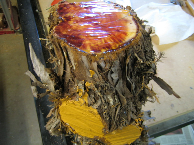 And once they try something, that's it. They are stuck with that product and brag on it and never even think there might be something out there better, but no, their mind is made up.... This is the last drift I got from the old timers. Well, someone not a turner, is trying to change our minds, heavens to murg- a- -troids I don't hardly ever turn, except substantially in bed, but when I do I don't like to see cracks that might screw up a good piece of wood I cut down then what ever I dabbed on the ends of the logs that didn't do the job it was put there to do. So stick your ear up here close and listen while I write down Aleene's tacky original glue, in the brown bottle I might add. It will only cost you numbskulls about two bucks to check me out...... I cut down this plumb tree some time ago, maybe four years ago ,maybe longer, and I can still stick a finger nail into this glue for it is still pliable. Aleene's was originally built for this reason, no it was not, it was originally built for craft making. This is probably the reason for the reasonable price tag. If it was included in you know whoses woodworking supplies we would see quite an increase in funds to get some to our garages... I just yesterday cut off some limbs and was out of the Aleene's glue so I thought I better dab something on the stubs for this hunk of wood might sit in the lathe for a month or two before I get around to it. I know, limbs , don't normally crack as does the ends. I heard that from a turner..