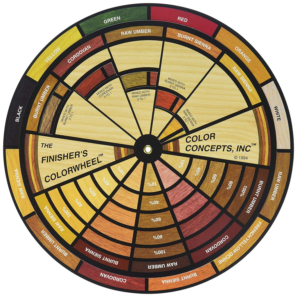 Last week we learned that red, yellow and blue are the primary colors that can make all other colors. Now we apply that knowledge. When you mix two primary colors, you get secondary colors. green = blue + yellow purple = blue + red orange = yellow + red Now comes the important part. If you have a finish that has too much of one color, you add the color opposite to neutralize it, and a (mnemonic) to remember Color opposites Red <> Green (Christmas) Yellow <> Purple (Easter) Blue <> Orange (sorry, you're on your own here, unless like me you are a University of Illinois Alumnus) If you forget, just remember that the opposite of a primary color is a secondary by mixing the other two colors, and vice-versa. So, for example, if your color is too red, you can add some green to neutralize it. But in wood finishing, we have some "earth tones" that correspond to some of these colors Red - burnt sienna (brighter red) or burnt umber (darker red) Yellow - yellow ochre or raw sienna Purple - cordovan The finisher's color wheel shows what happens when you combine two of its colors. Unfortunately, unless you go to a non-big-box paint store, you are likely not to find these on a label, but rather, cordovan might be called "mahogany" or some other nickname. Although I knew this is theory, it became apparent when in a refinishing class one of the other students was working on a table he'd brought in. It was a really orange color after initial staining. The instructor made up a pure blue glaze and smeared it on. Immediately the ugly orange turned to a nice brown.