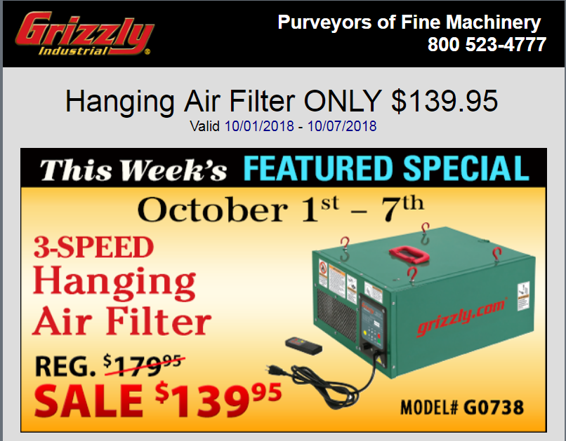For those considering an electrostatic air filter Grizzly has a pretty good price on theirs this week.- 2 replies