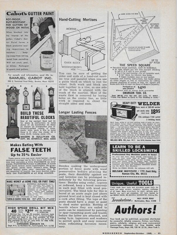 View File Workbench Magazine July-August 1968 Tool Caddy Plus Dining Room is Workshop This is a scanned document of the now defunct Workbench Magazine of this era. Permission was granted by the new Workbench Publication for The Patriot Woodworker community to copy and use the old Workbench Magazine at our pleasure, and for free distribution and re-use. Submitter John Morris Submitted 08/06/2023 Category Shop Furniture-