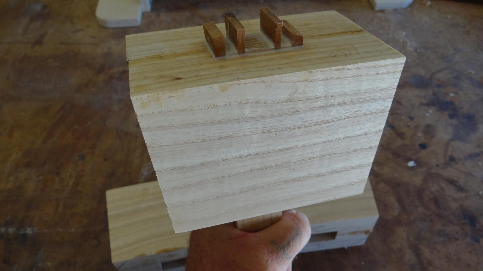 From over working the Single Brain Cell Sketch-up. It was on over load trying to figure out a tool box build. Had a blank of spalted....something or other Well, this is the leftovers. It was 22" long, cut it in half. Drug the old Craftsman T rail lathe up off the storage crates, and fastened it down to my bench. Only place I have down there to run a lathe. Kept looking through stuff, trying to find the "pattern' i wanted. Got the blank mounted on the lathe, and turned round. Chippy stuff, no shavings. Got a start at just winging it from memory, and looked over and found the pattern. Handle was a bit too scrawny for my hand, so the new one was to be FATTER. Sanded things down, parted off the one end. Added an oil finish, and tok everything out side to dry in the sun Old mallet is laying down on the job, again. had to wipe down the NEW mallet one more time ah, that is looking a bit better. Not too bad for a rookie? FIRST mallet I have ever turned. I inherited the old one...