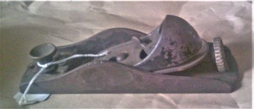 Out and about, today...trying to find ONE Antique store that was open....in a town with 5 stores? Even the Plaza Inn was closed, today? There is a store right across the road (St Rt 31) that was open..IF you called the number on the front door...as she lives around in the back... had to sneak the package into my house, when I got home The Infamous "Plain Brown Wrapper"....$26 and change... Going to open it real slow....$10 for a single point marking gauge? But, turn it over, and there is 2 more very sharp pointy things.....Brass thumbscrews...not sure IF this is Walnut, or, Rosewood.... Unroll a little bit more.. $15.00 says the tag.....A patent date on the lever? That would be 10 - 12 of 1897.... Old logo, too... Appears to be a low angle block plane...with an adjustable mouth... A look under the hood...You just don't see wide beds like that, anymore...Thinking this MIGHT be a Stanley No. 60-1/2? Made before Stanley decided to stamp the plane number somewhere... Town is called Mount Victory,OH...
