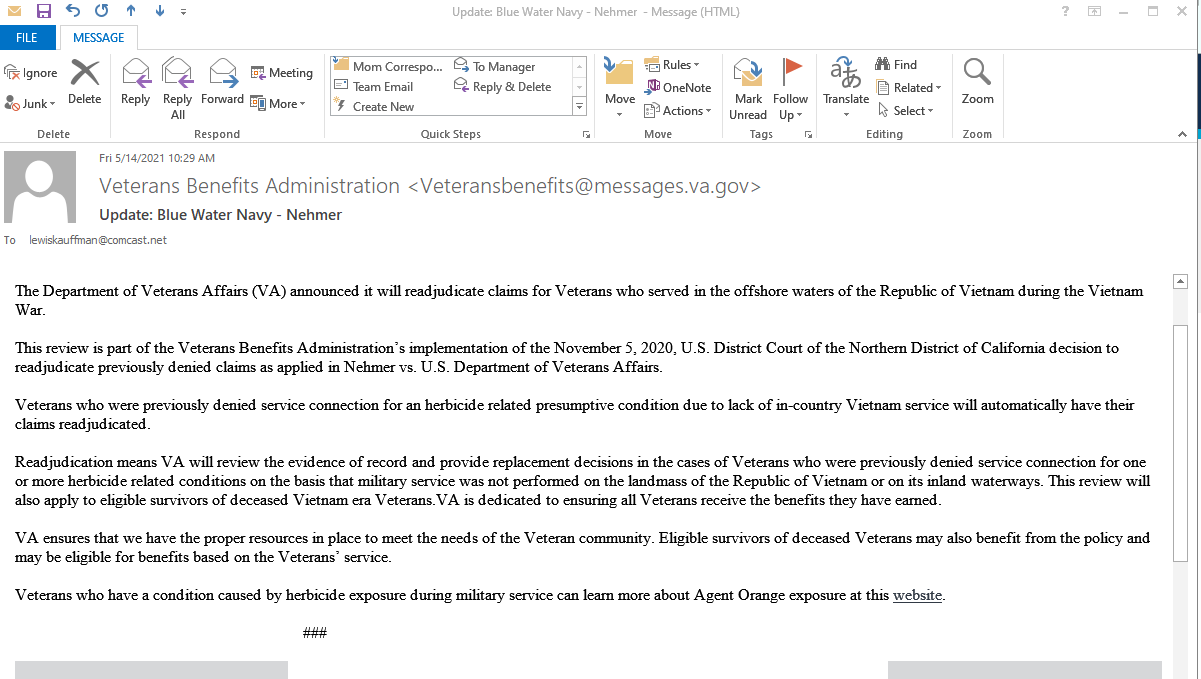 This just popped up in my inbox- Here's the link to the website- https://www.va.gov/disability/eligibility/hazardous-materials-exposure/agent-orange/